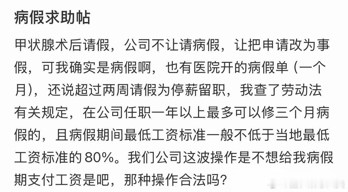 甲状腺手术后,公司不批准病假,我需要请假。