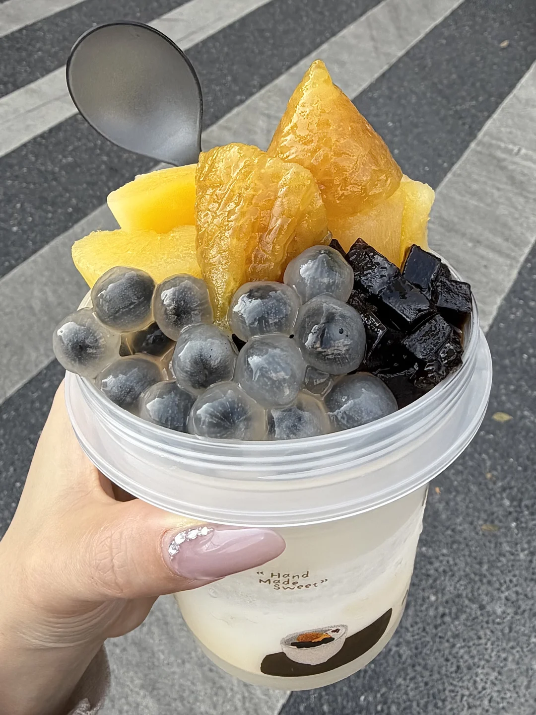 😅这是什么天才吃法呀! 竟然意外的好喝!!!加了好多料! 木薯➕黑糖粉粿➕芝麻汤圆、还有闽式碱粽一起铺在杯顶再浇上水牛奶! 满满都是料!口感层次很丰富! 还收获到好朋狗贴纸1张➕冰箱贴2款!超可爱!冰箱贴质量也好好!!! 喝不了那么多宝子,点一杯也有送好朋狗联名贴纸1张 带着好朋友下午茶安排起来😆 深圳糖水深圳奶茶深圳美食南山美食甜品治愈一切解锁新吃法