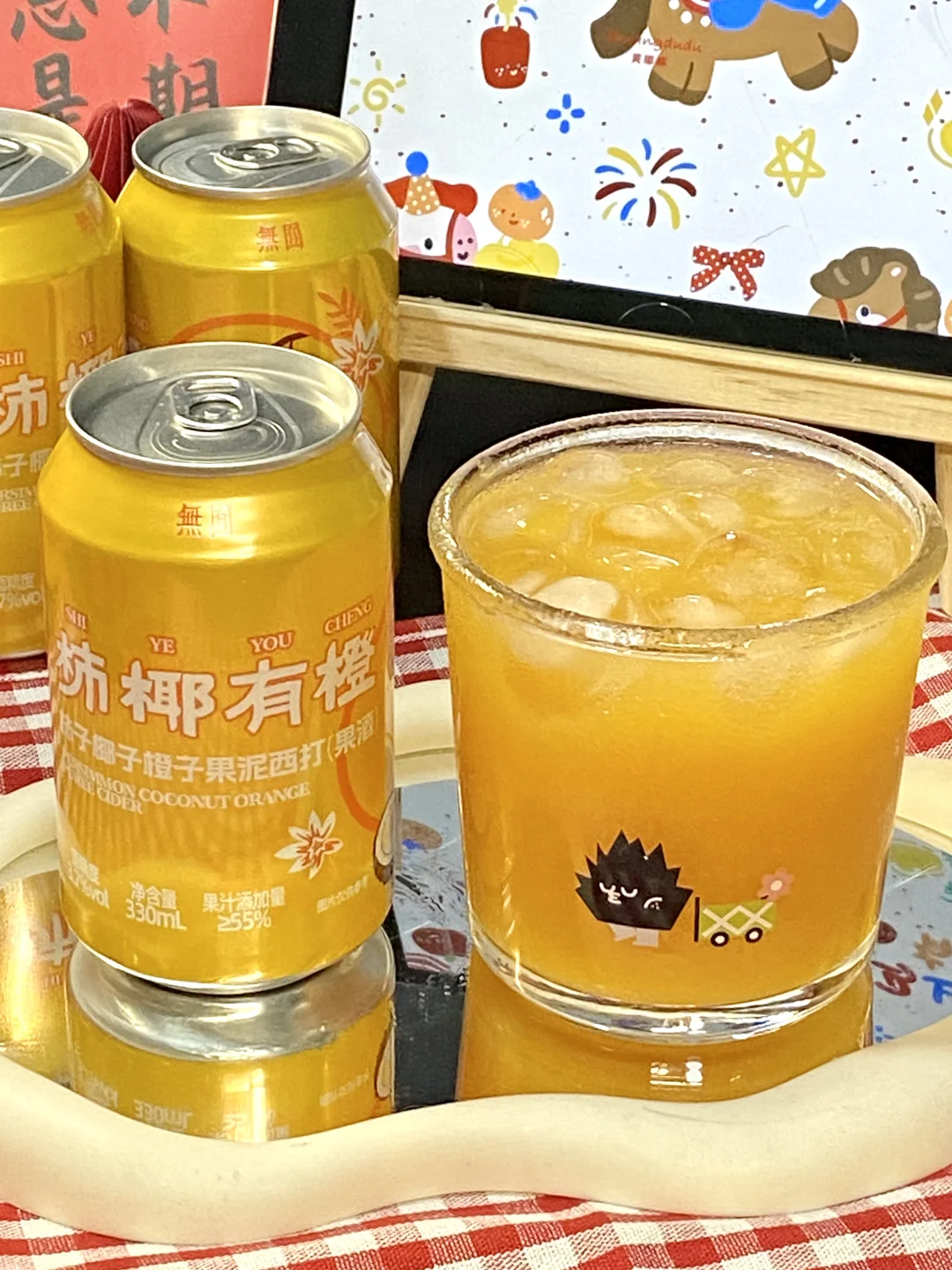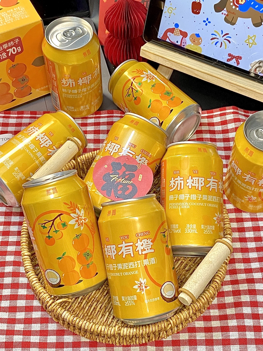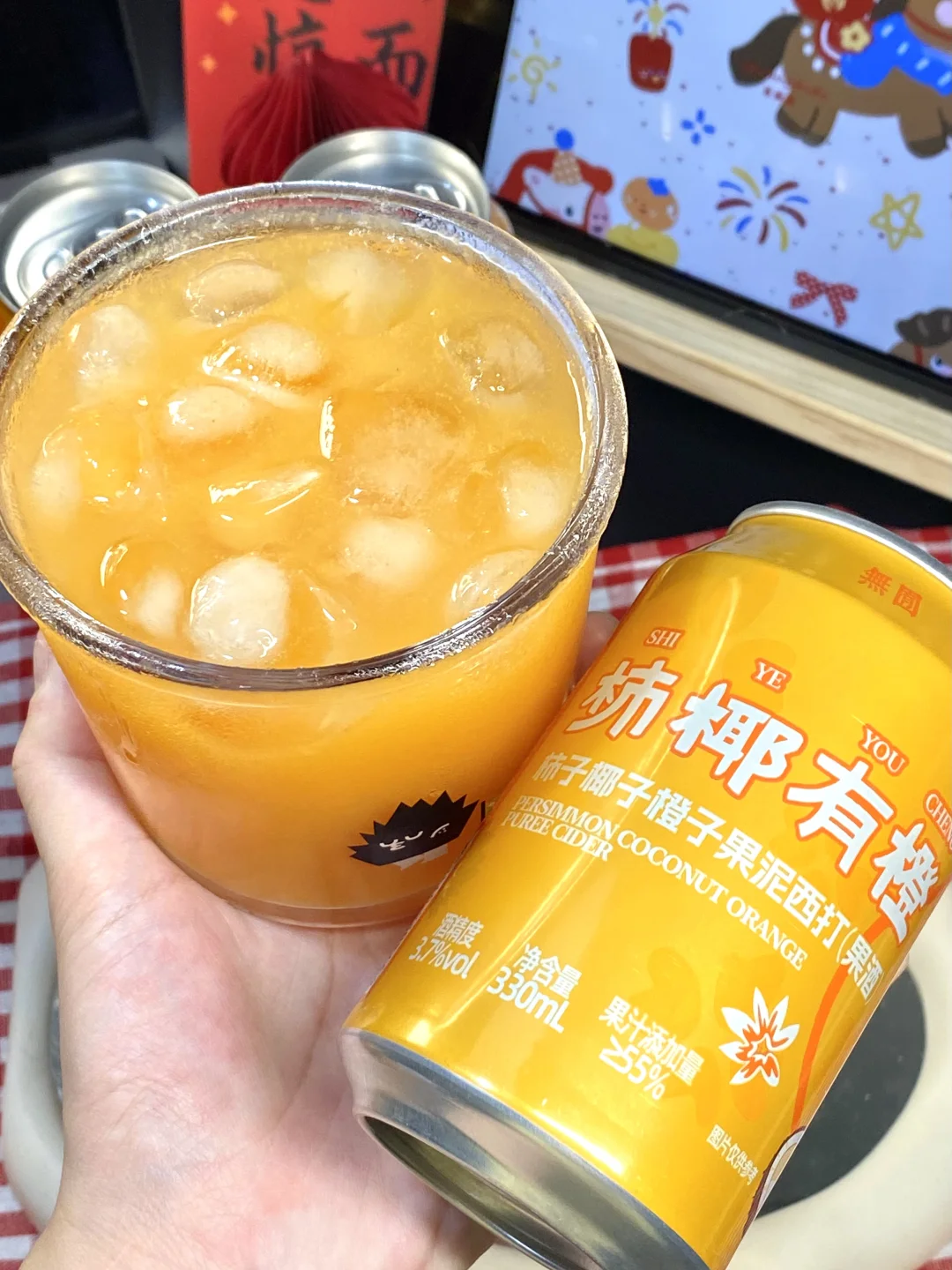 过年不知道喝什么小甜酒的一定试试这个 是山姆新出的柿椰有橙(谐音事业有成)果泥西打!气泡感十足 入口是酸酸甜甜的果泥感 柿子➕椰子➕橙子的搭配真的好爱 一罐满满都是vc 包装也很有新年氛围 而且才3.7度 微醺的快乐直接拉满!! 我妈说喝完赶紧让我再囤几箱