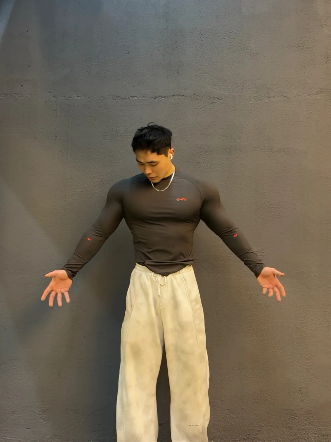 上面紧身 下面得穿的宽松