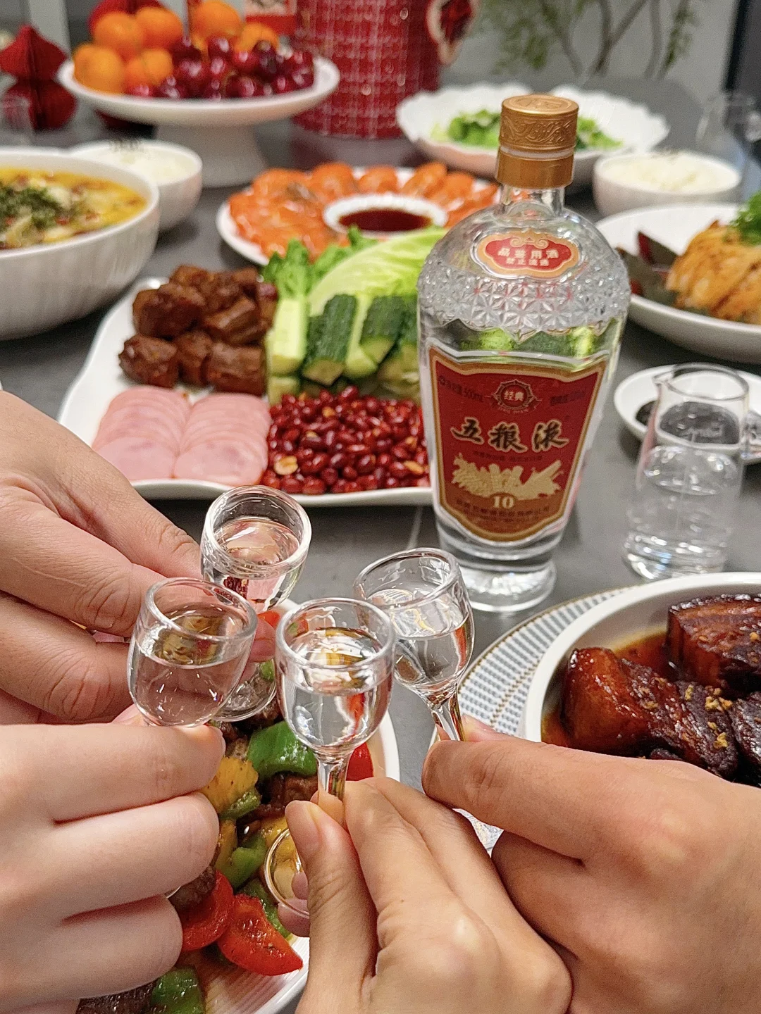 一年中最重要的这顿饭,酒自然也要配得上这份隆重。今天特意开了瓶经典五粮液·10。父亲看到便说:“这才是真正的好酒,你们这次选对了。”经典的鼓形瓶,温润端庄,光是放在桌上,便为这顿年夜饭添了几分郑重其事的仪式感。