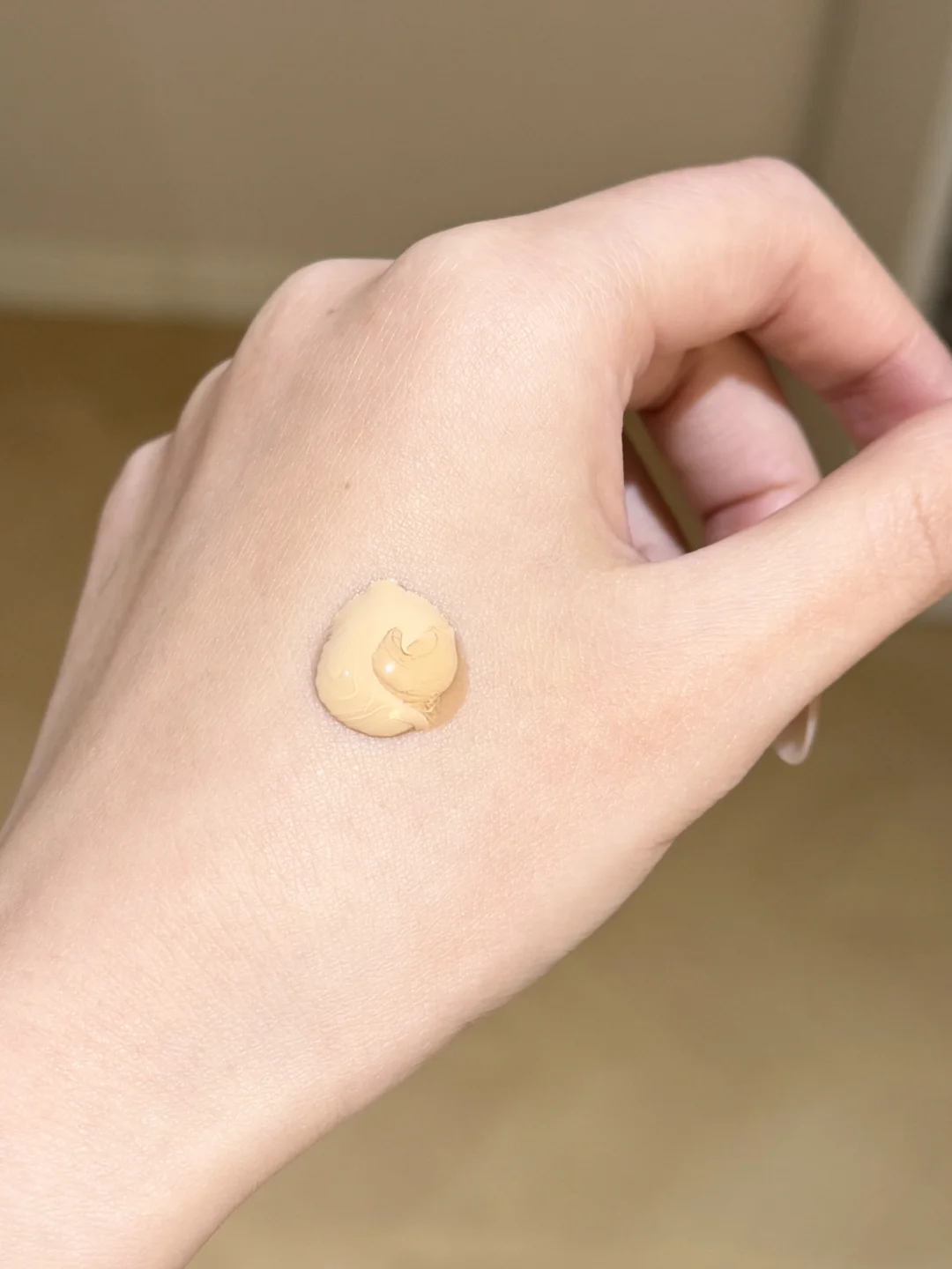 挤出来粉底和精华液是分离的,用指腹打圈揉10下左右,就融合成稀酸奶质地了,看柜姐先用刷子把粉底从面中向外抹开,再用粉扑轻轻垂直拍匀就好了…