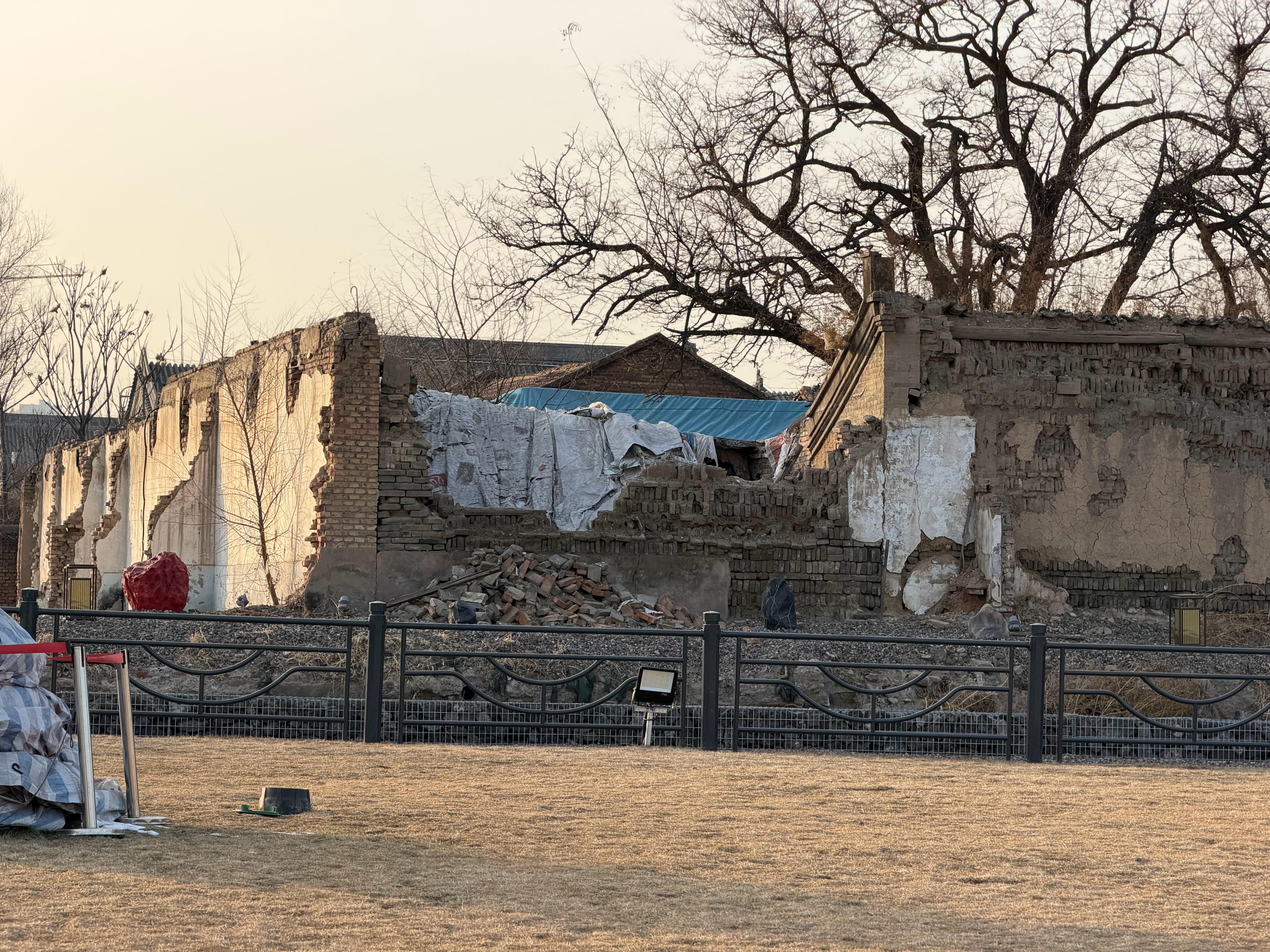 刚看到这个老房子被铁围栏拦着我以为是故意留的古建筑,但是后来感觉又不太像难道这是钉子户??? 大同·大同古城城墙外带状公园