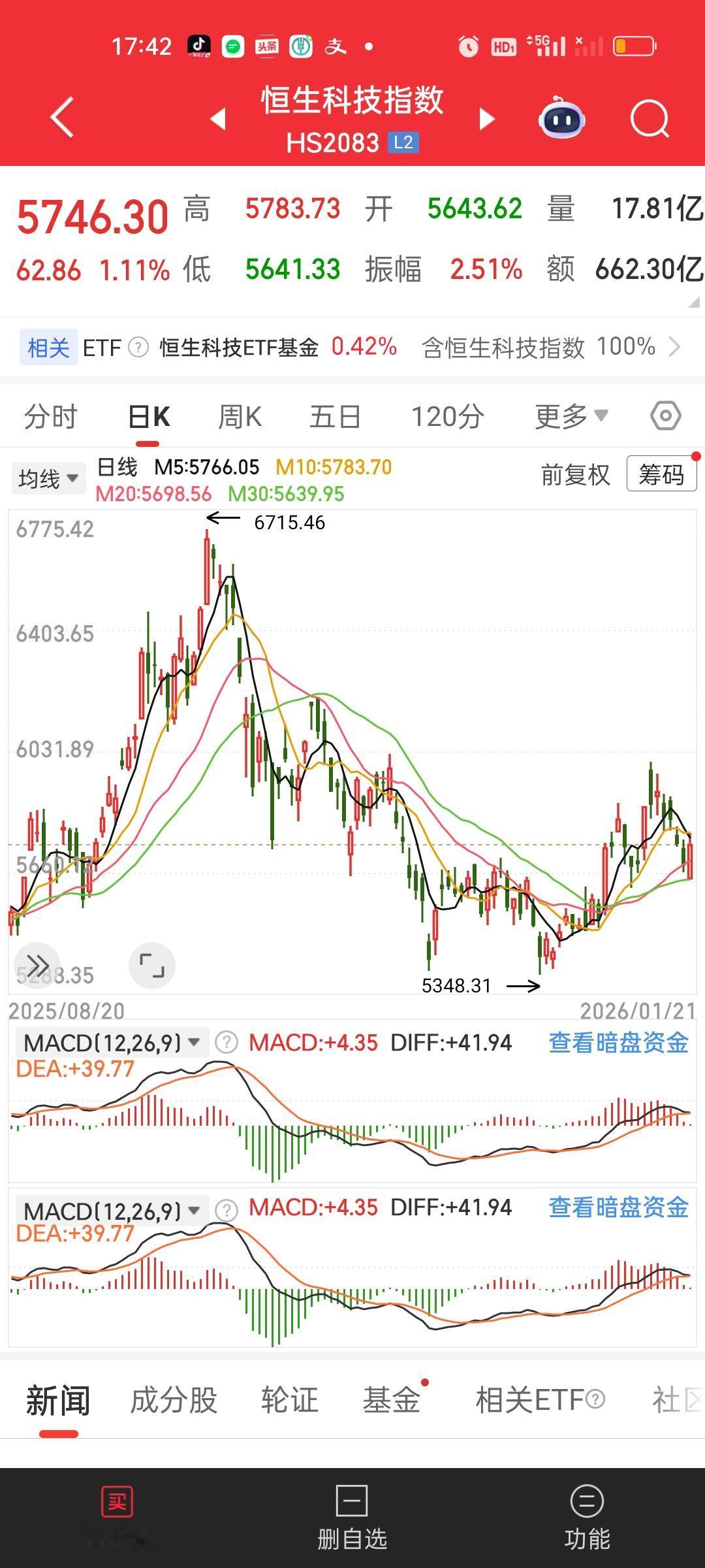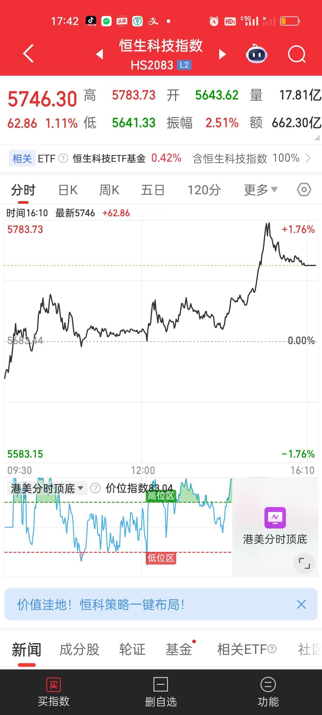 在我们收盘后。港股明显上攻了一下。但还是冲高回落了。两大指数都收在了5日10日线下方,20日30日线上方。也走出了一根标准的阳包阴,恒科这里是肯定可以加仓的,因为看到了企稳的信号,也就是我们常说的右侧交易的信号。