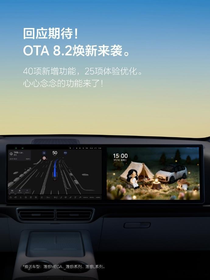 理想汽车OTA更新40项新功能1月21日,理想汽车推送OTA 8.2更新,涵盖智驾、舒适、交互等维度共40项新功能。VLA视觉语言助手强化行为学习,优化刹车与转弯体验;支持导航至超充站后自动泊入车位、开充电口盖,1月底覆盖400+城市站点。园区场景新增默认出口选择与复杂指令识别,可精准泊车。AD Pro车型上线城市NOA,提升复杂路况应对能力。HUD新增窄路影像与轮毂视角,主驾支持面容识别自动切换坐姿。新增宠物模式,支持空调常开与远程查看车内影像。任务大师优化多条件触发逻辑,提升交互效率。汽场全开理想汽车理想l9曝理想汽车2026新战略