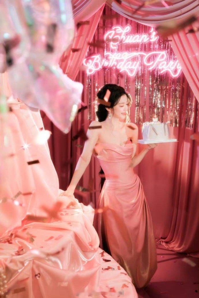 佟丽娅的粉裙造型杀疯了!浅粉纱裙+飘逸披风,优雅大气又仙气,这才是氛围感美人的正