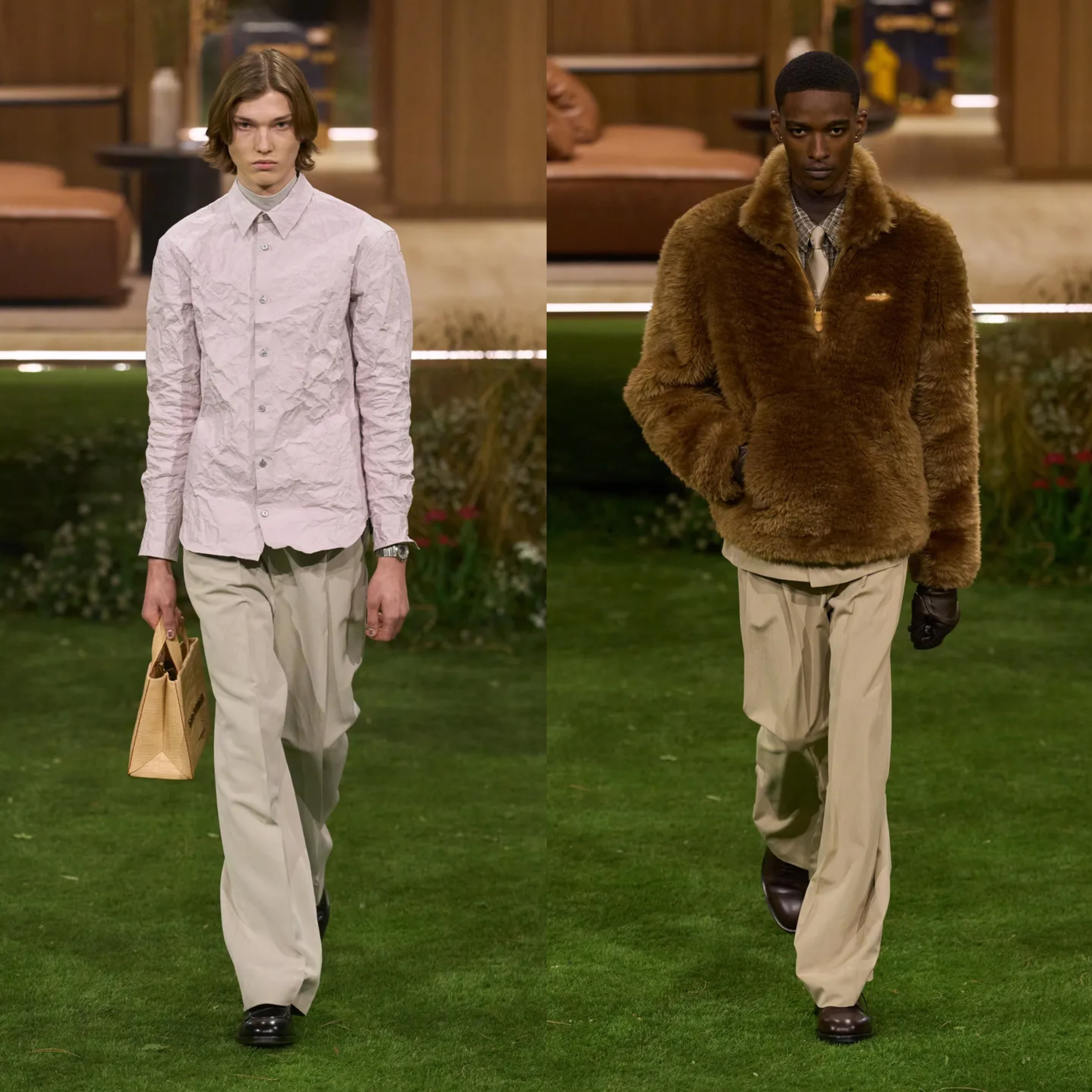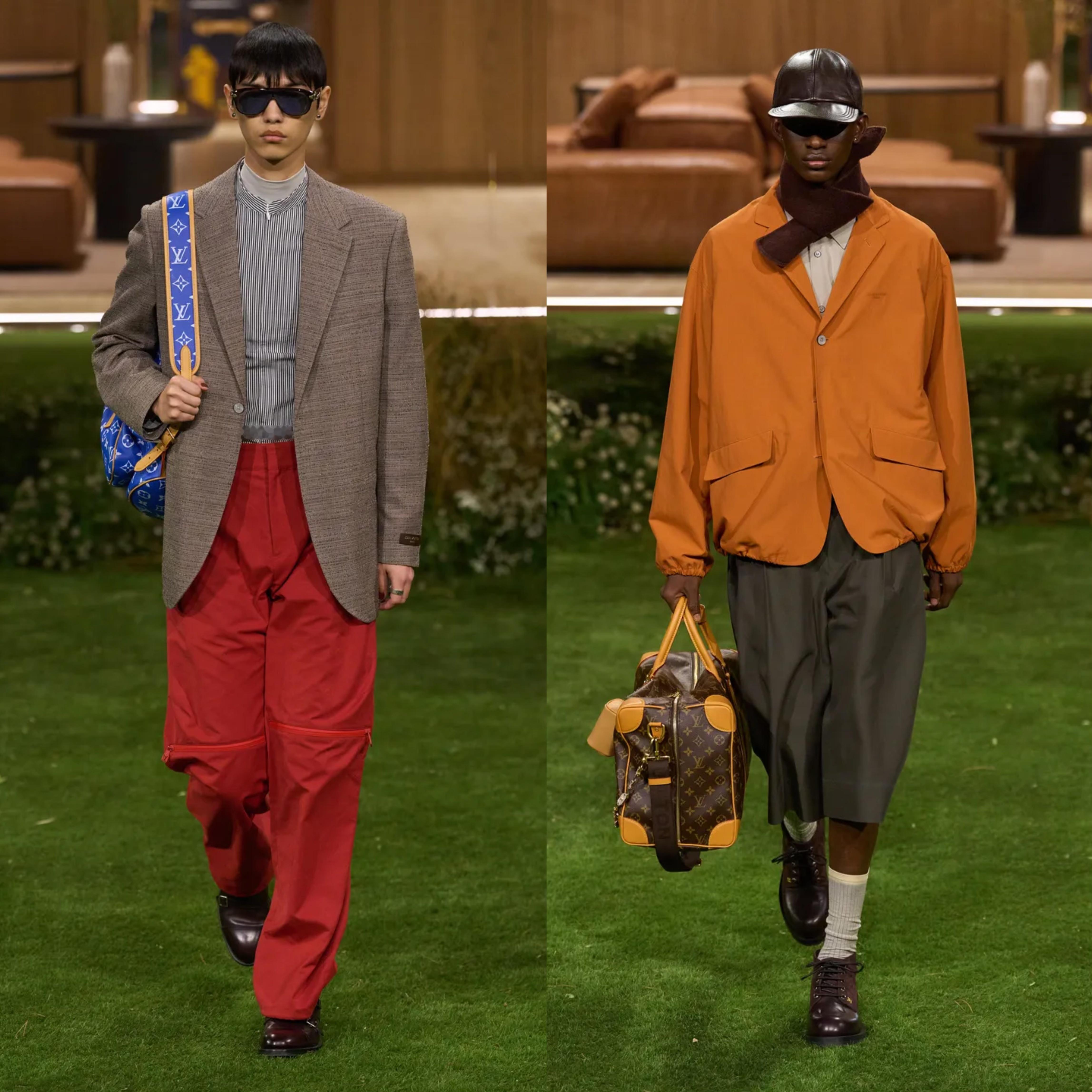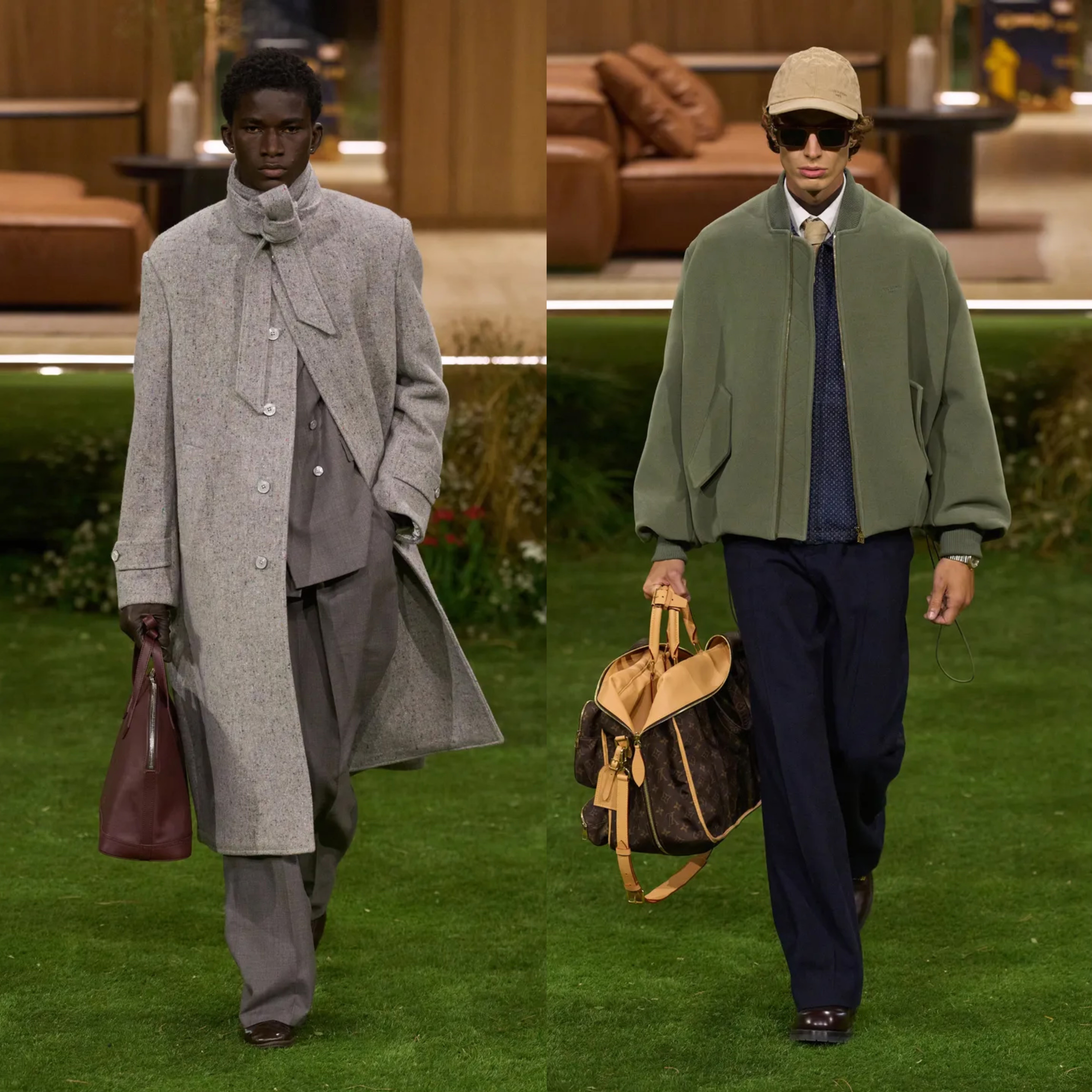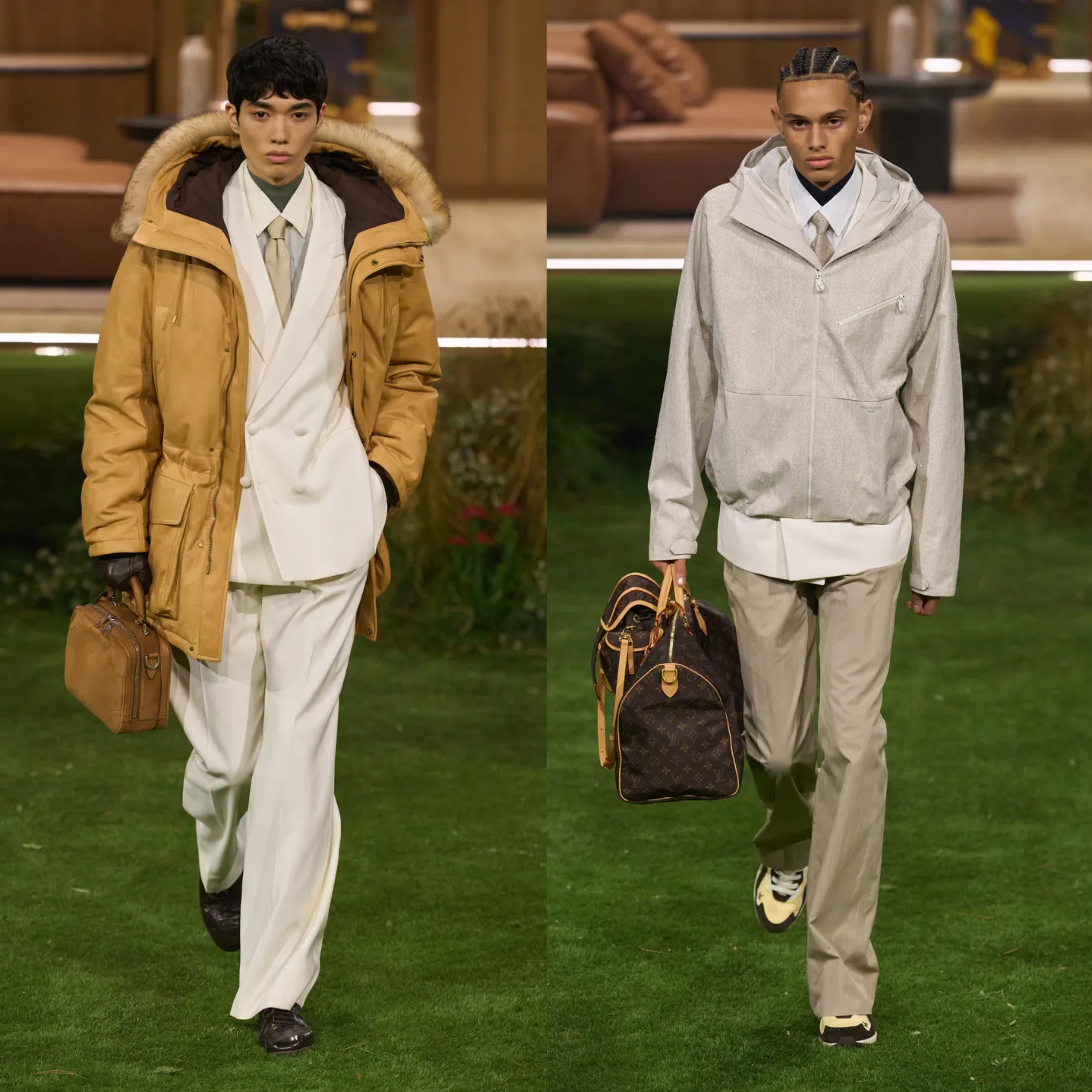 2026秋冬男装秀落幕,创意总监Pharrell Williams为品牌百年旅行基因续写现代新篇章。秀场以DROPHAUS概念居所为舞台,将复古未来主义与实用奢华揉入细节设计,双面无衬羊毛羊绒打造的“空气西装”成为系列灵魂,流动的剪裁重构权力着装的定义,恰逢Monogram诞生130周年,经典老花以夜光、恒织面料得以全新呈现,Speedy P9、Keepall等经典手袋在错视工艺、天然皮革中焕新。从防水机能的科技面料,到柔化升维的绒面革工装,米蓝棕的中性色谱勾勒出跨越场景的摩登衣橱,让高级实穿回归材质本身的温柔与质感。代言人,品牌大使惊喜同框,共同见证巴黎时装盛世😎 LV秋冬26男装秀