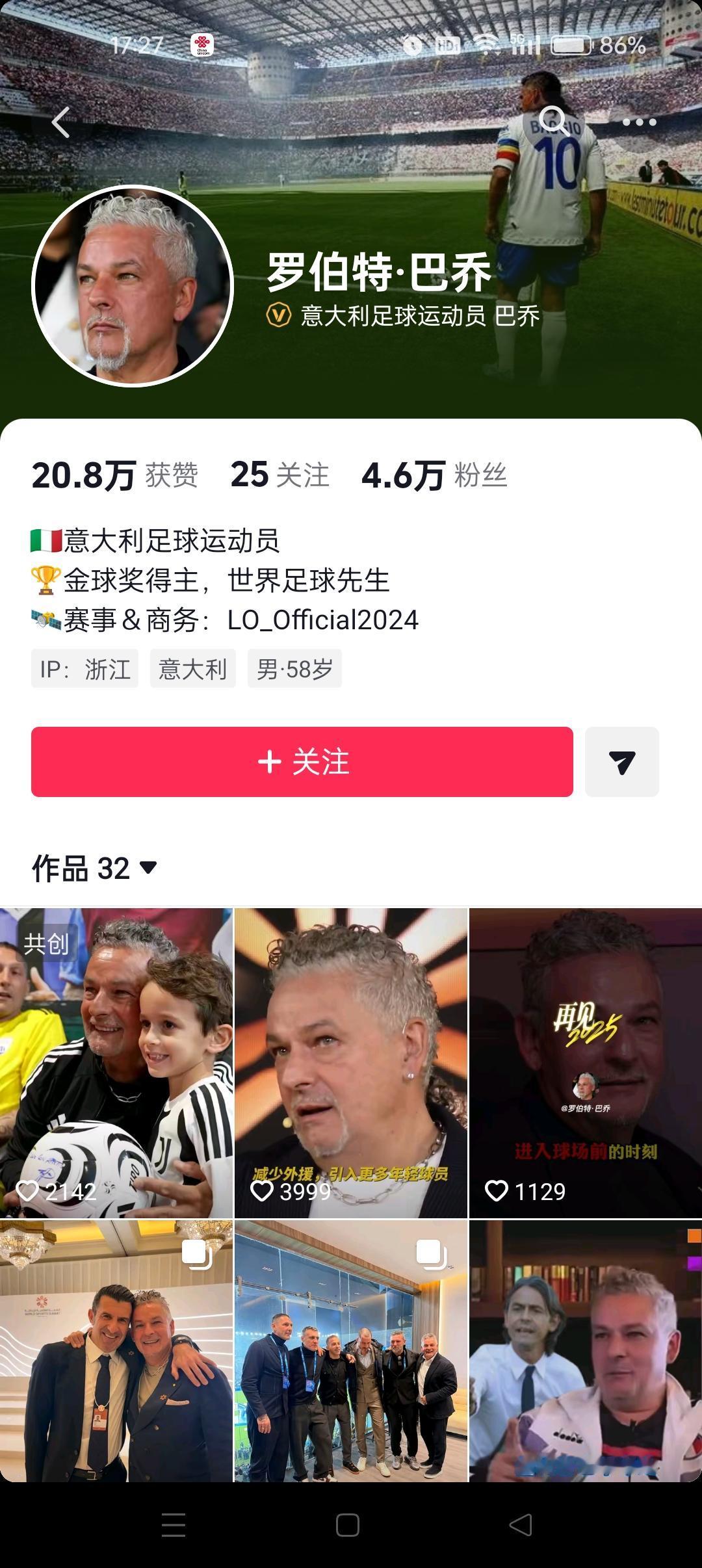 中国足球历史性突破打进决赛,向余望发抖音庆祝,喊着:还有一场,还有一场就回家,是不是羡慕那些回家早的球队了,接着出现了罗伯特。巴乔的留洋,这个巴乔是意大利的那位忧郁王子吗?