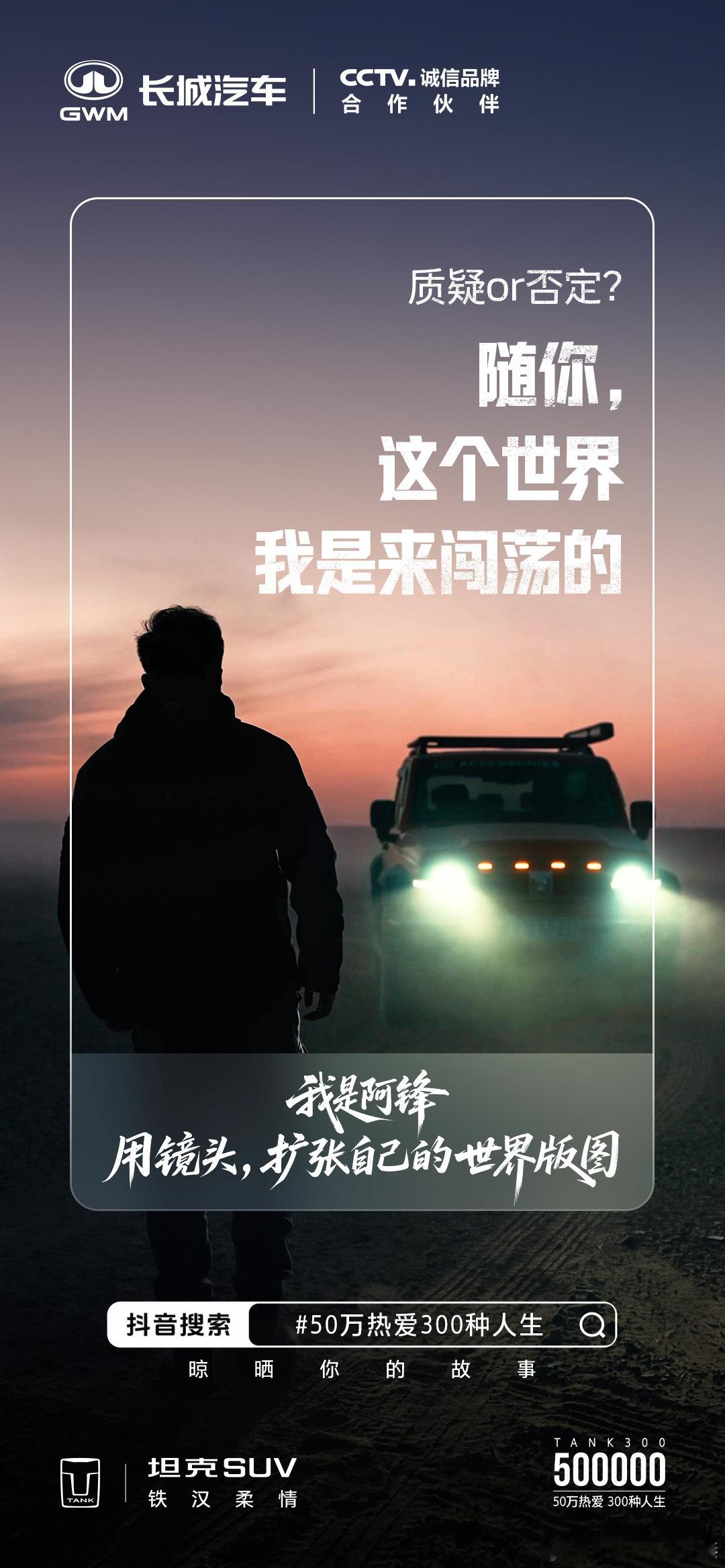 去旷野 去星空下 去地图的留白处轨迹不同身份各异 但灵魂一样自由不羁坦克30050万热爱300种人生 系列故事即将上线,敬请期待~ 新越野新向往 铁汉柔情马年同行