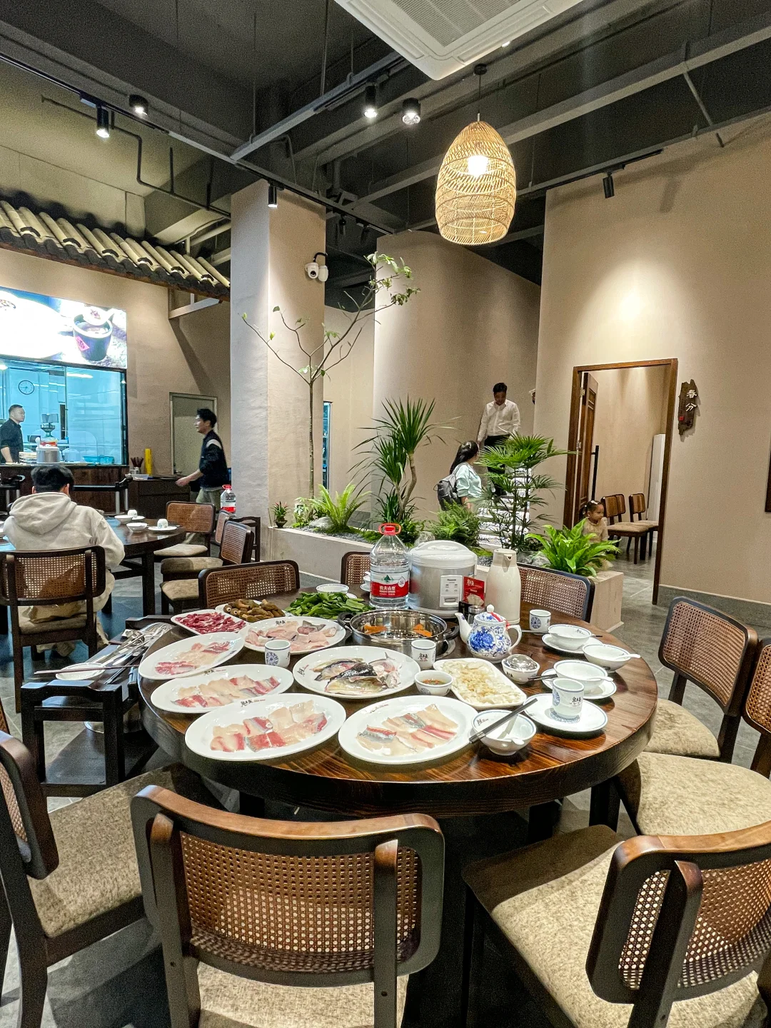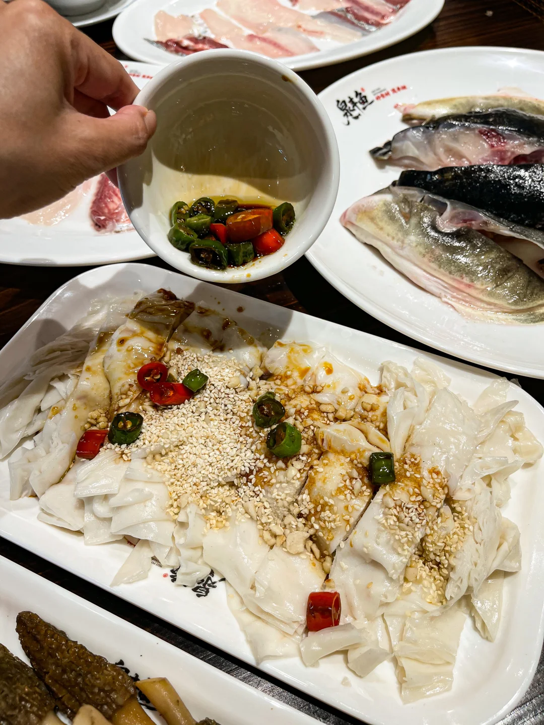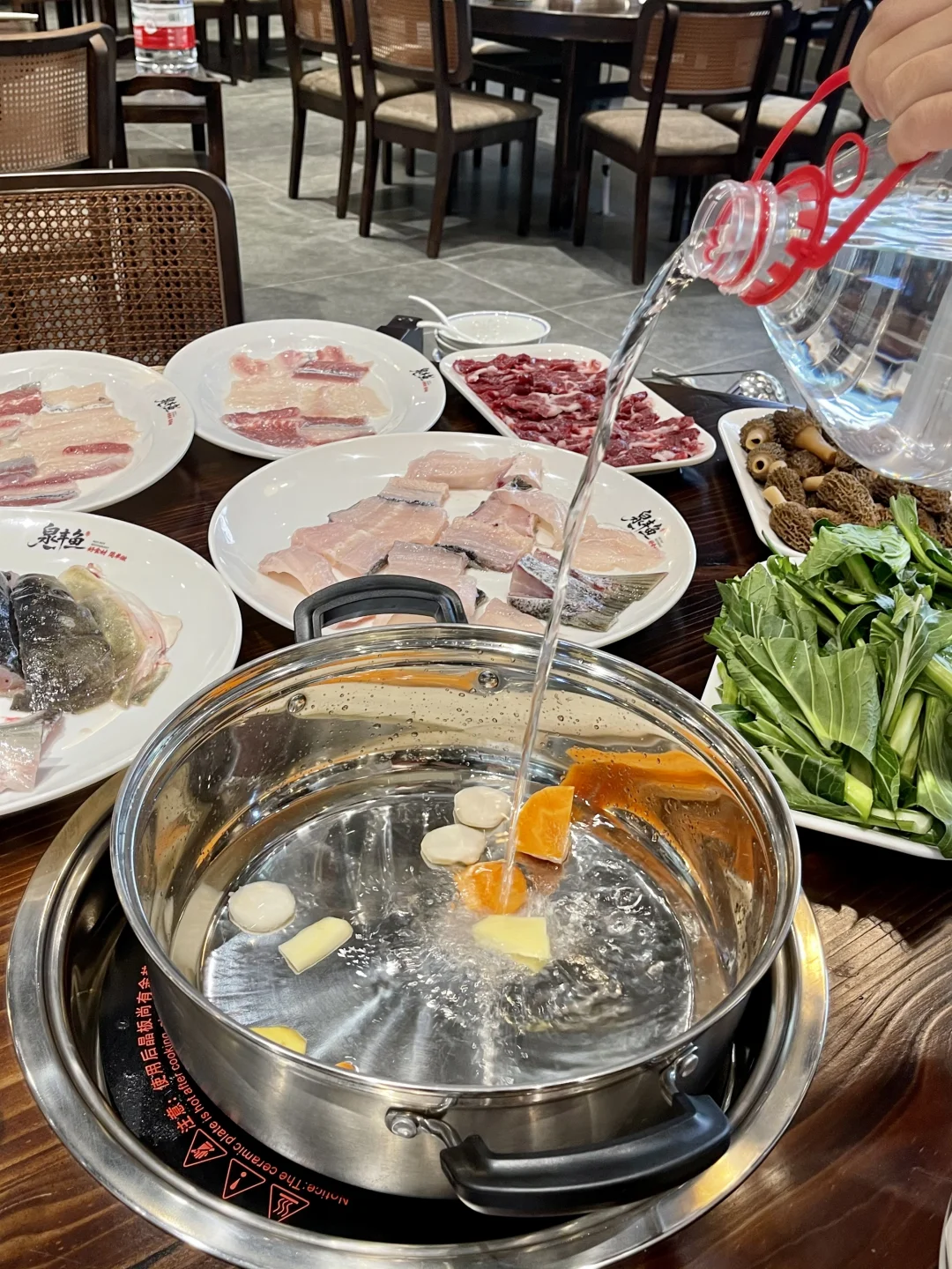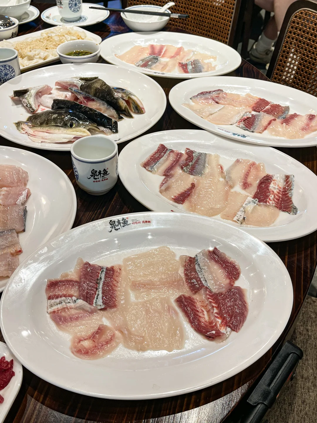 这里主打吃鱼🐟也有阳山鸡和水鱼~牛肉!都有! 我们点了一整条大头鱼,吃鱼,往大只的点,按斤算~ 现点!现捞!现🔪 切🐟鱼片还有鱼头跟鱼骨! 看着切出来薄透的鱼片,就知道!新鲜! 广东的就爱这样,清水打边炉,去骨清水烫鱼,慢慢打散,几秒就能吃,鲜甜又嫩滑~ 蘸料只需要调个姜丝葱丝酱油花生油蘸料,就好惊艳了!吃的就是本身的的味道。 谁吃谁知道! - 小榄新店小榄美食小榄吃鱼中山鱼火锅中山吃喝玩乐中山打边炉小榄鱼火锅小榄火锅食过番寻味本地人爱吃的店小榄泉丰鱼中山旅游攻略
