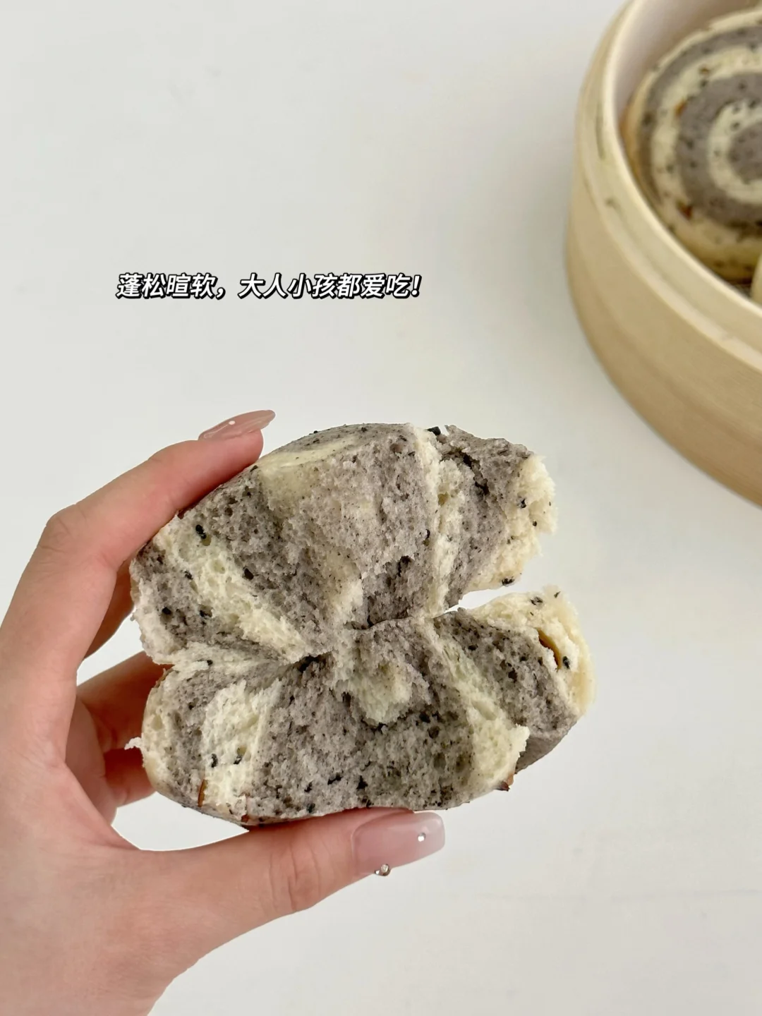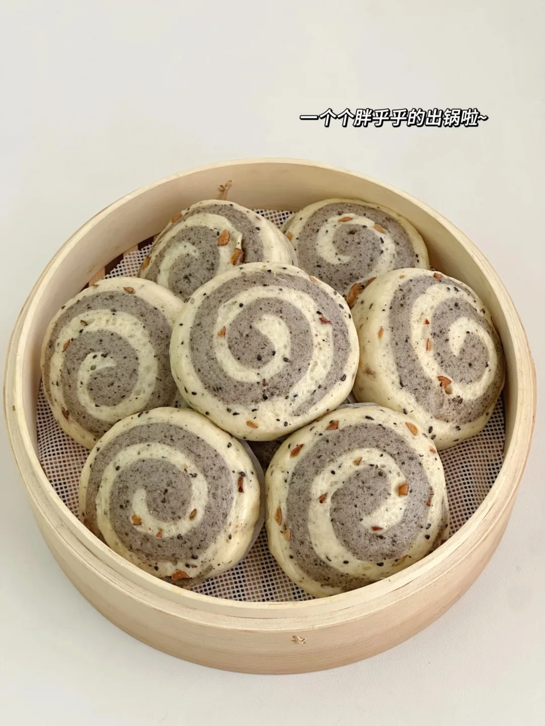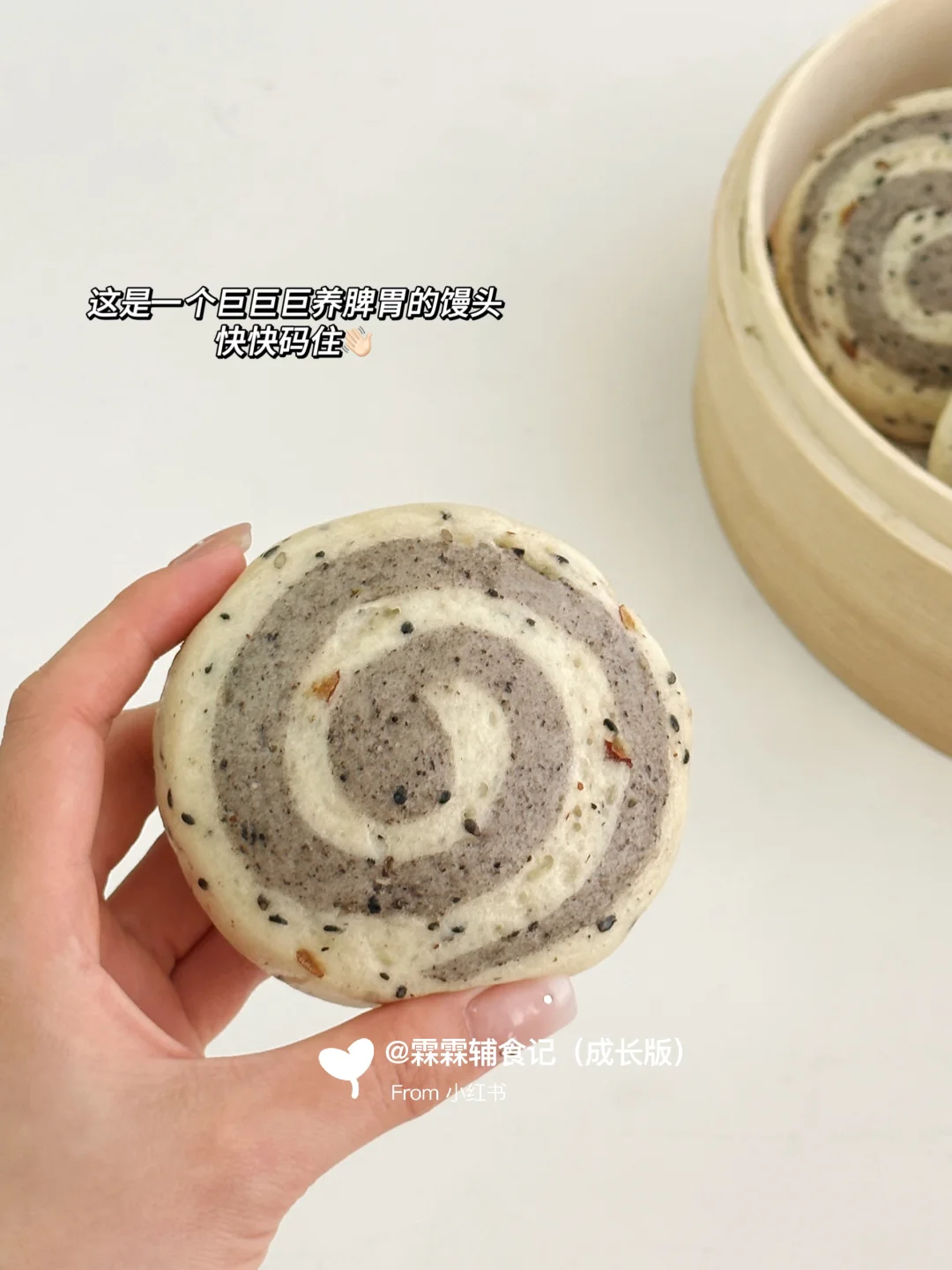好吃又巨养脾胃的山药小米黑芝麻馒头🍥