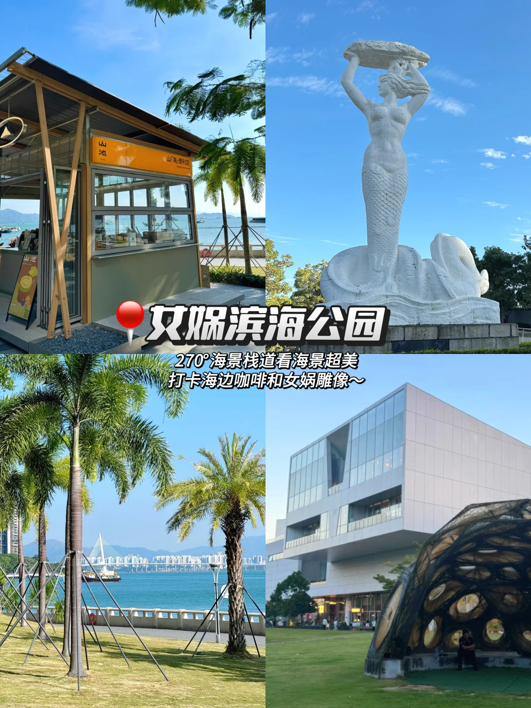 📍女娲滨海公园:270°海景栈道看日落🌅超美,打卡灯塔和女娲雕像~