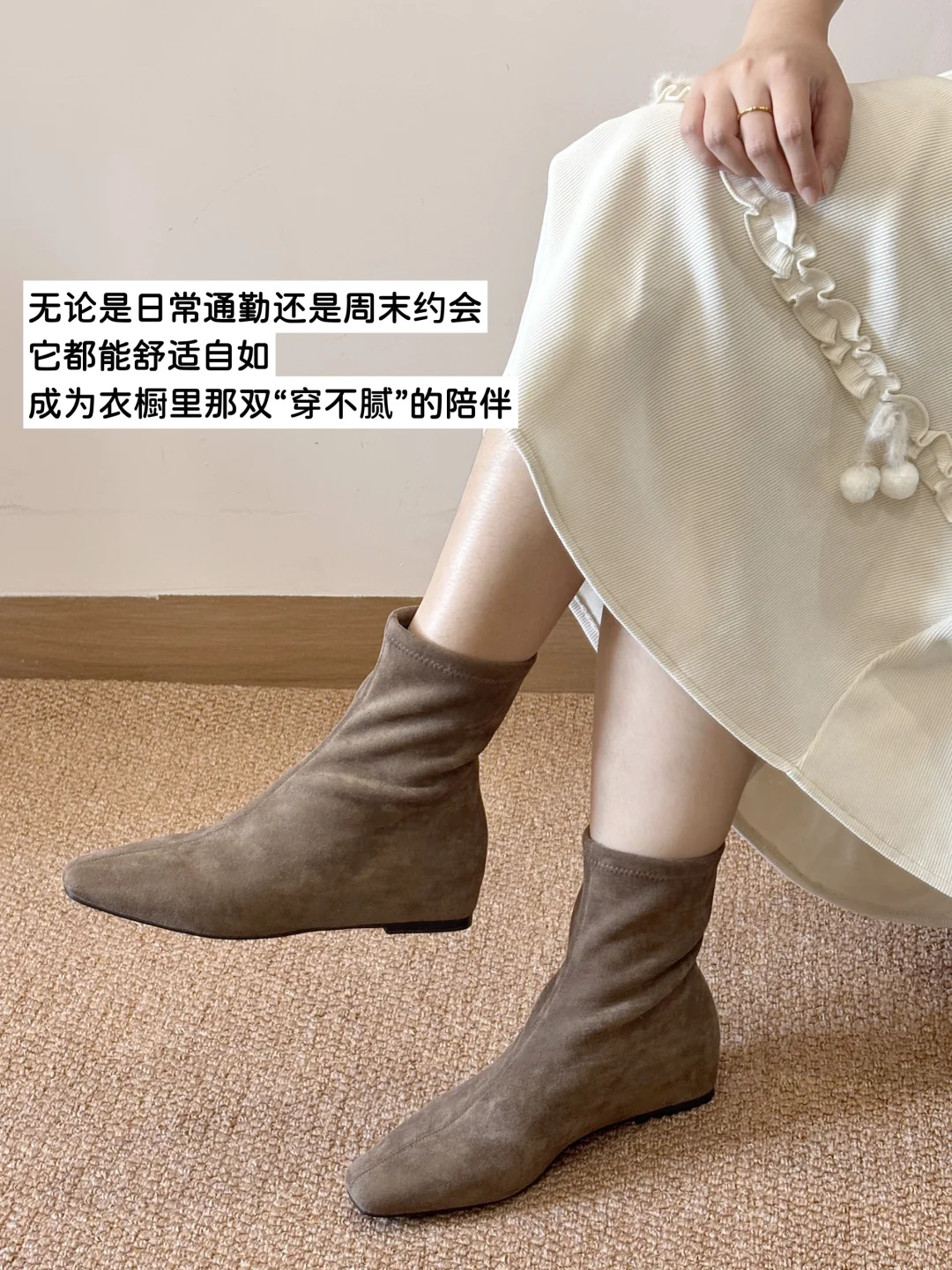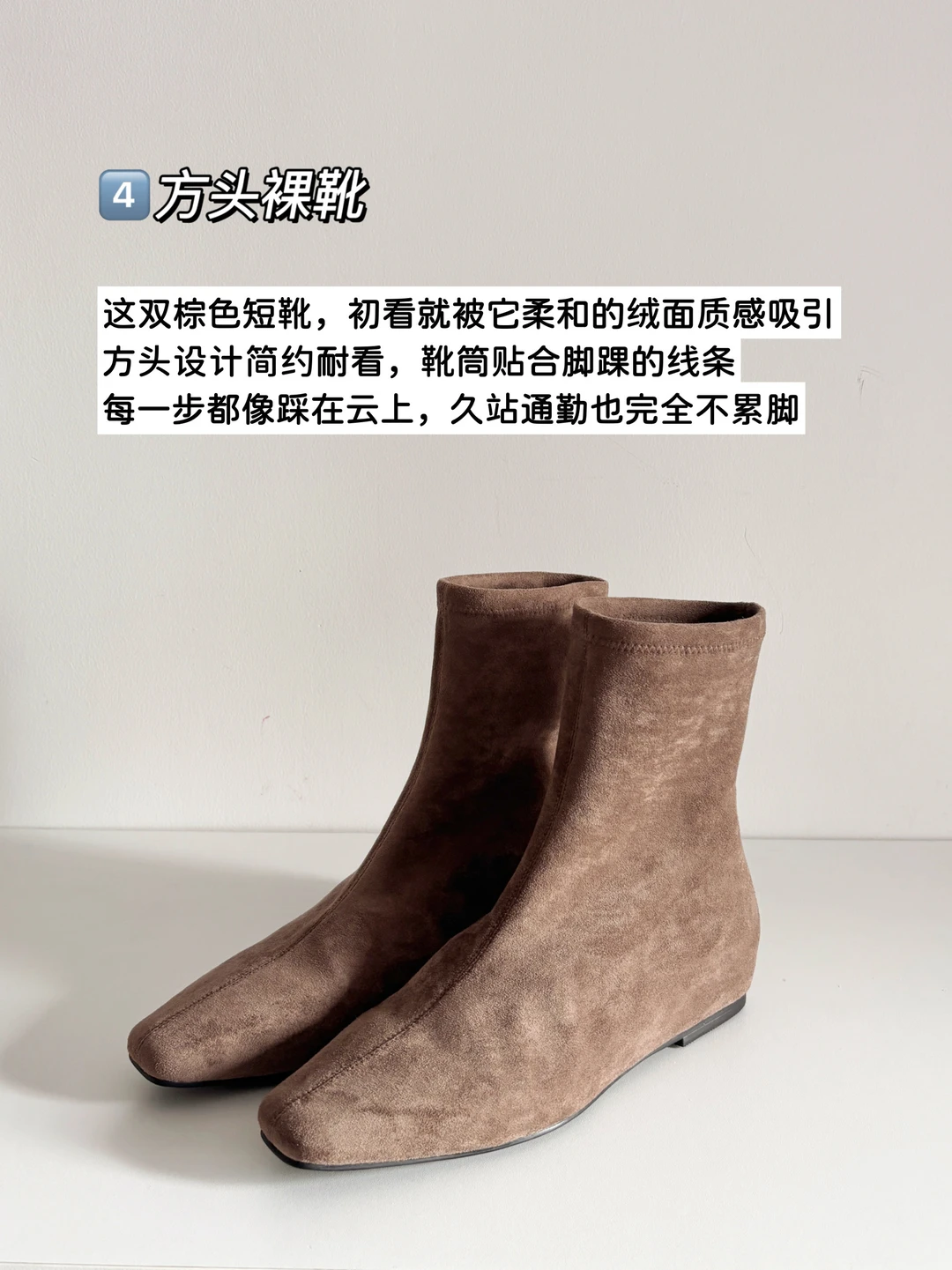 这双棕色短靴,初看就被柔和的绒面质感吸引