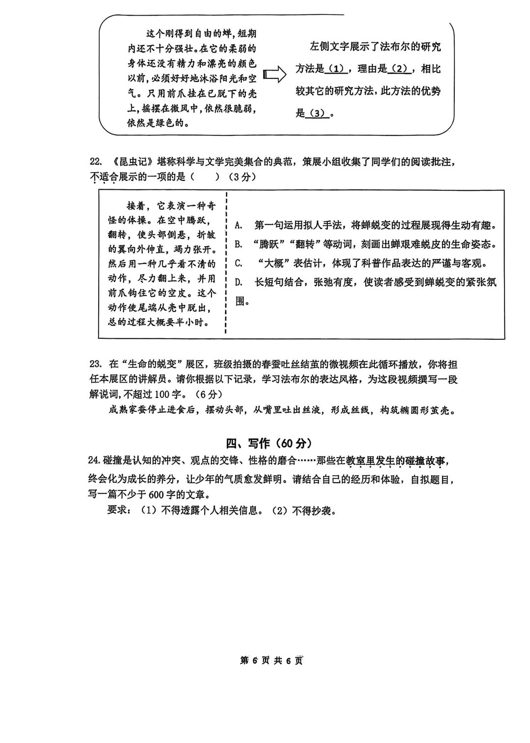 2026闵行一模语文卷,新鲜出炉!!