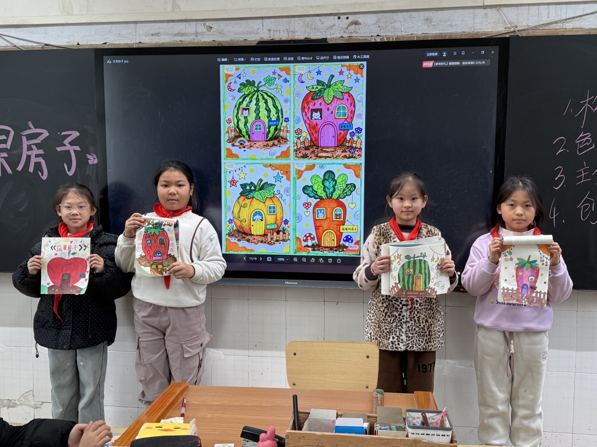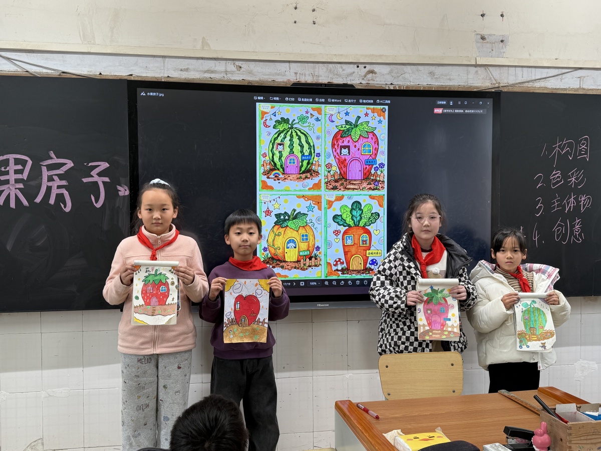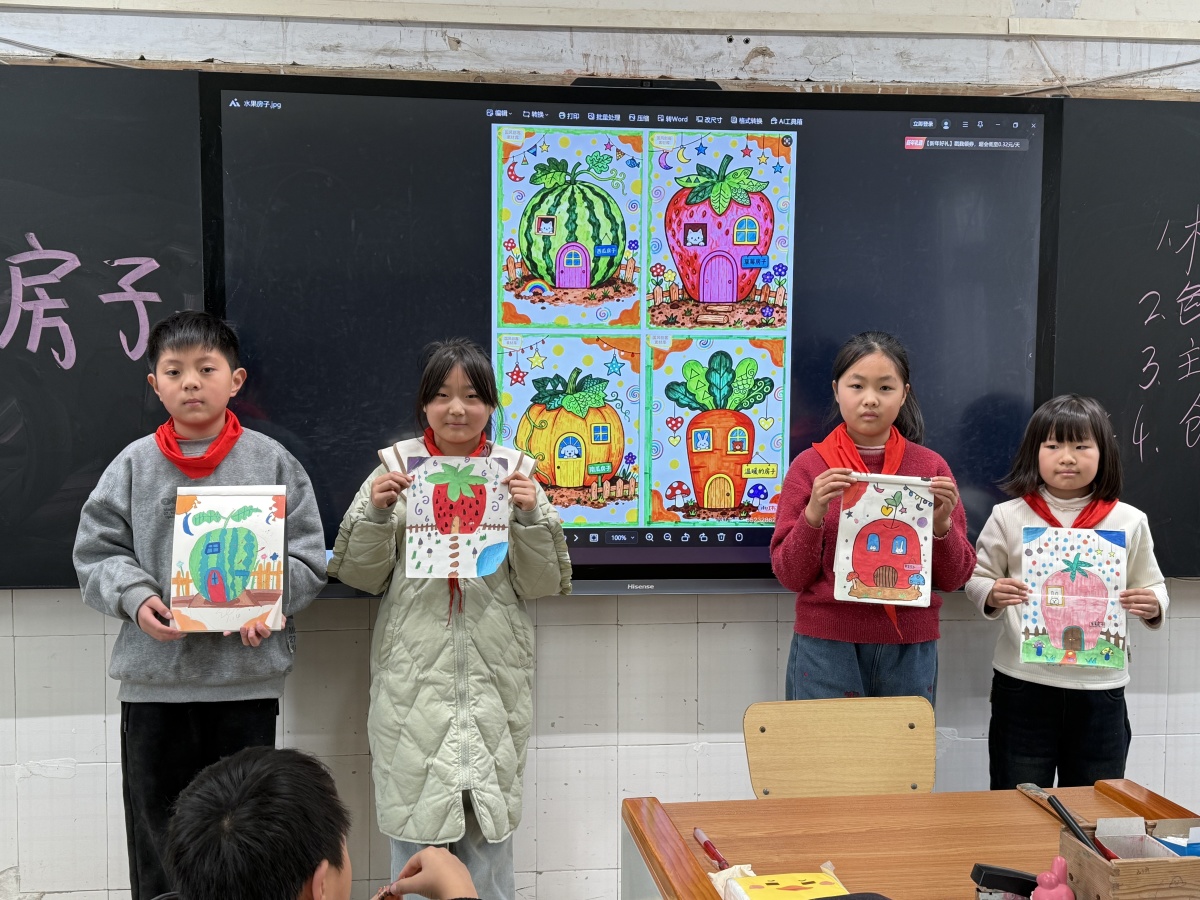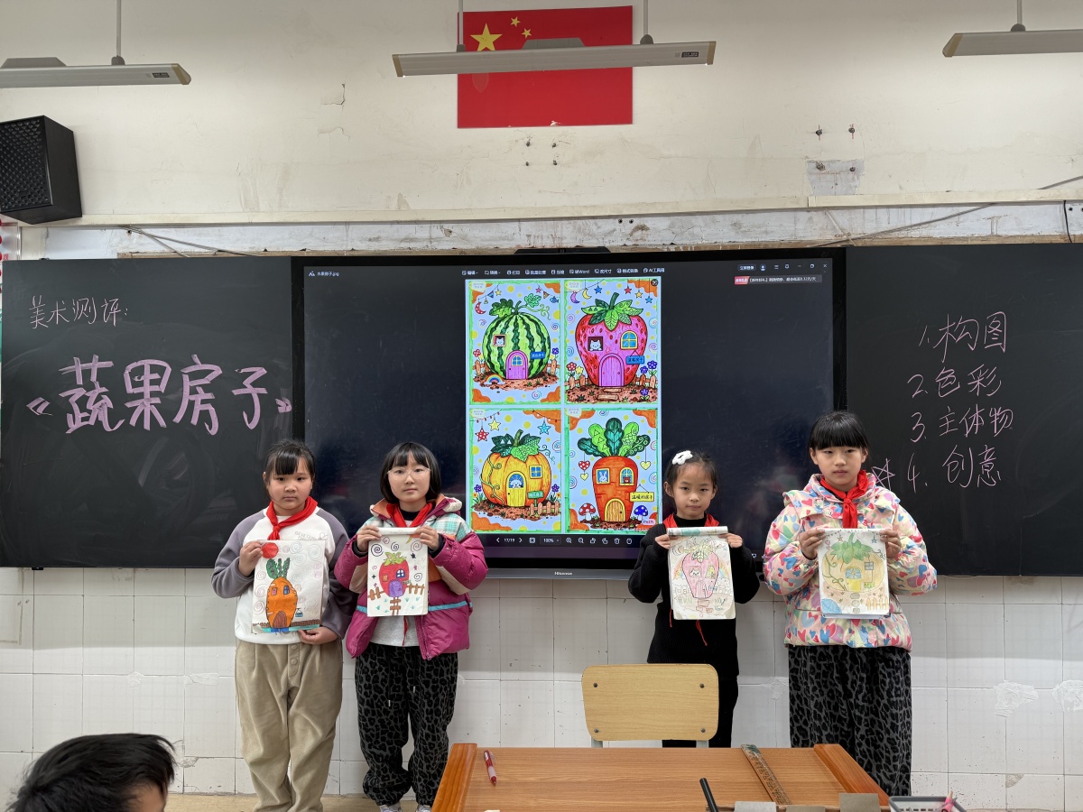创作过程中,孩子们互相交流想法,分享技巧,脸上洋溢着专注与快乐的笑容。老师则穿梭在学生中间,耐心指导,及时给予鼓励与建议,引导孩子们更好地将创意融入作品。经过一番精心创作,一个个形态各异、充满童趣的蔬果房子新鲜“出炉”,每一件作品都承载着孩子们独特的想象力,不仅满足了测评的各项要求,更展现出天马行空的创意。