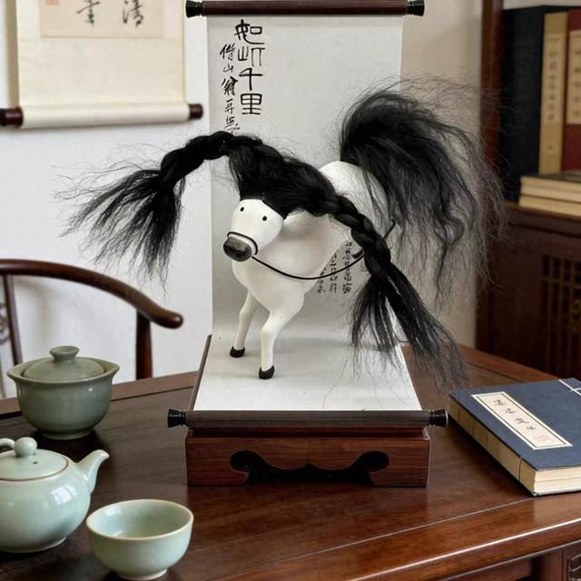 王女士回忆,在接到任务时大家都“心里没底”,因为齐白石的作品较为洒脱,而工作室原本的风格较为写实,大家也不确定做出来的文创是否受市场欢迎。初期在制作上也有难点。由于小马是两个前蹄着地,在烤制过程中出现过坍塌变形,甚至身子直接断掉的情况。后来通过搭骨架、填充支撑材料等技术改进,才有了现在后蹄腾空、可以稳稳站立的马彪彪。现在工作室还计划对马彪彪的动态造型进行创新。