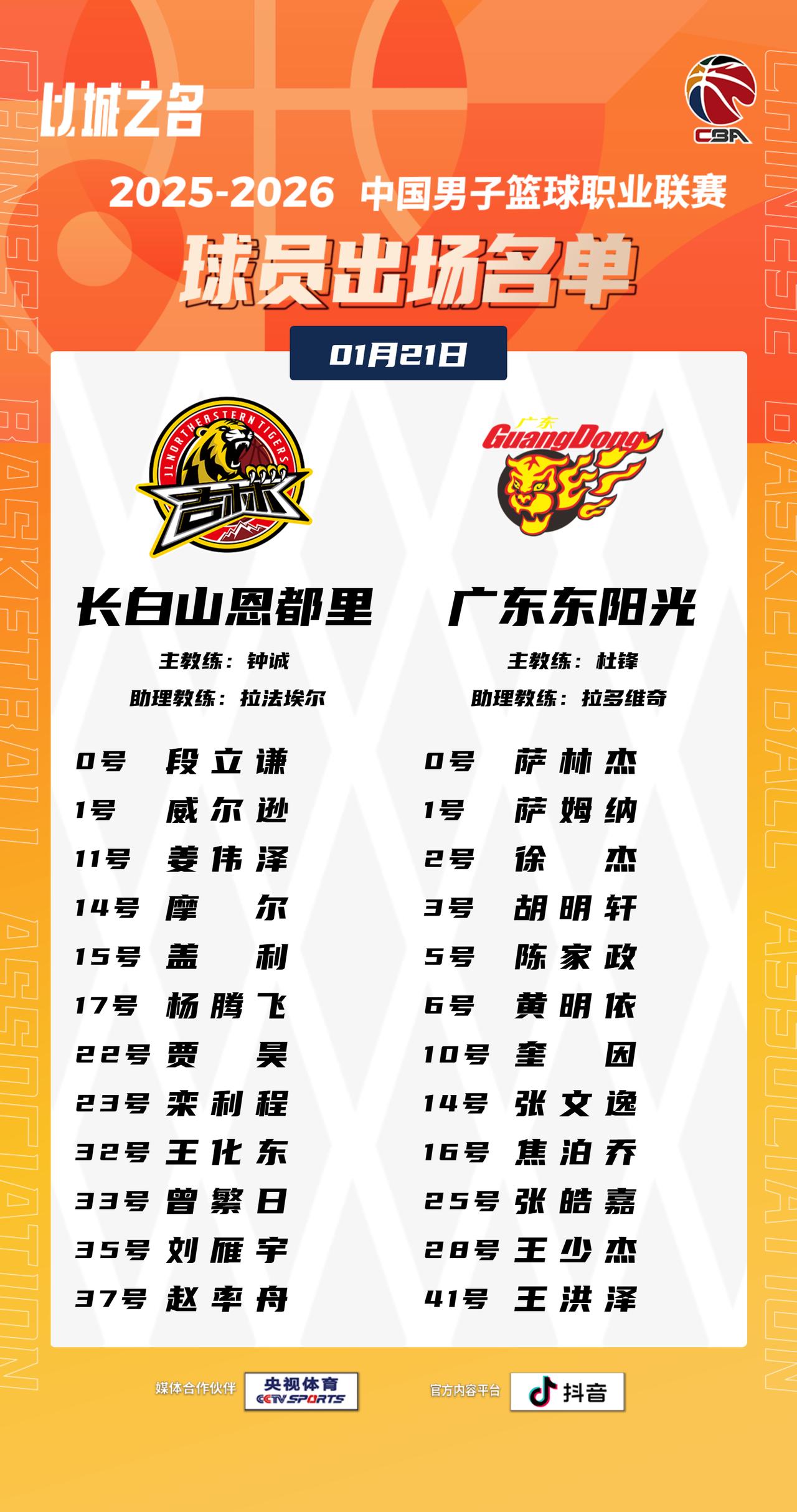 【大名单出炉】2025-2026赛季CBA联赛常规赛第十八轮今晚开打,2场比赛将在19:35同时跳球,敬请期待!
