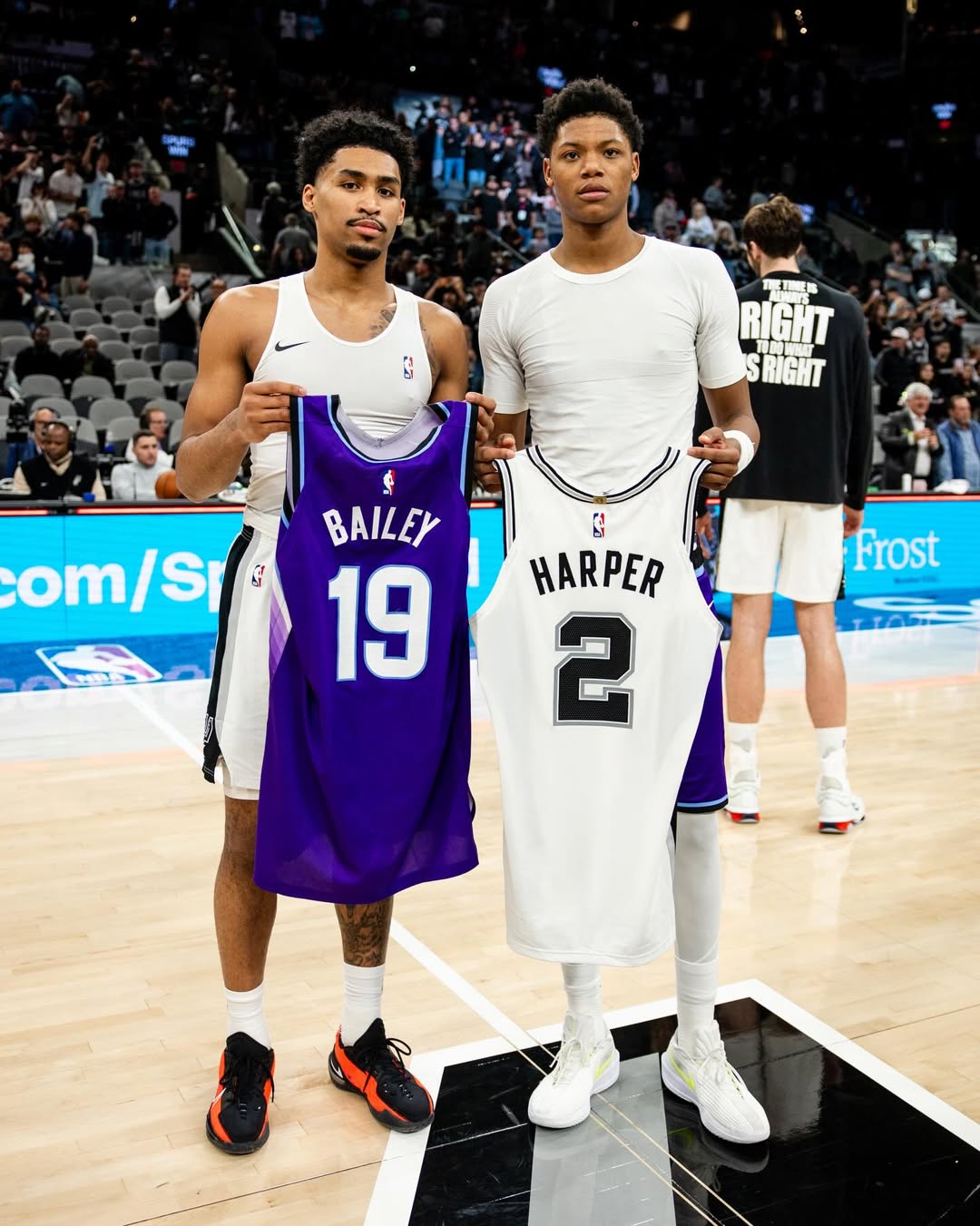 虎扑01月21日讯爵士官方更新Ins,晒出一组爵士球员埃斯-贝利和马刺球员迪伦-哈珀的合影与球迷分享。