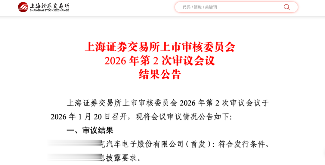 1月21日,上证报记者从上交所官网获悉,上交所上市审核委员会1月20日召开2026年第2次审议会议,芜湖埃泰克汽车电子股份有限公司(以下简称“埃泰克”)沪市主板首发上市申请获审议通过。汽车电子领域在资本市场将再添“新军”。