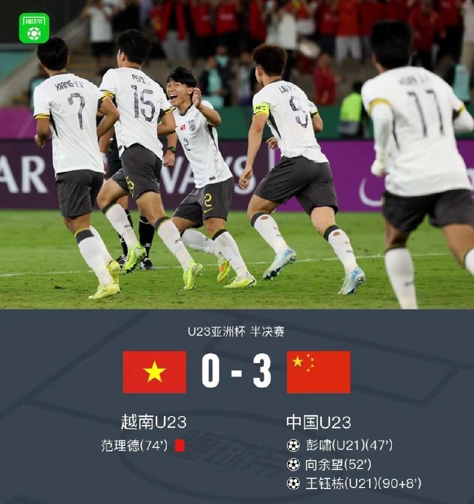 中国U-23要夺冠,必须满足这4个条件,缺一不可。 球迷们都知道,昨晚中国U-23三军用命、火力全开,以3-0击溃越南队,昂首闯入了最后的决赛。 决赛挑战日本队,想要拿下冠军,根据以往经验及年轻人的特点,必须要满足以下4个条件: 1、各级领导少干预、少指导。 2、非球队人员少开会、少动员。 3、与比赛无关人员少去更衣室。 4、禁止任何人干预教练组的人员安排、战术打法。 这几点说起来容易,甚至是必须的,但实现起来并不容易,因为,以前太多次大赛前,与比赛没关系的人,会出现在不该出现的地方。 甚至看见过,足协领导空降更衣室,亲自布置战术;真的不希望,再看到这一幕。 不要给这帮孩子太大压力,就让他们按照,自己的节奏去踢,给他们宽松的环境,这就是对他们最大的帮助。 值得一提的是,中国U-23以3-0挑落越南队,这场胜利意义太大了。 这是自2004年以来,中国男足各年龄国字号球队, 时隔22年,再一次闯入亚洲赛事4强,更是历史上,国足U-23首次杀入亚洲杯决赛。 球迷们都知道,中国U-23是第4档球队,可以说是一支弱队,他们小组赛1胜2平,以小组第2名出线,8进4关键战,点球大战以4-2淘汰乌兹别克斯坦,真是一步一个脚印,打一场进一步。 再过三天,1月24日23:00决赛,迎战日本U-23,希望∪-23国足戒骄戒躁、再接再厉,继续创造历史,球迷们还没看够。