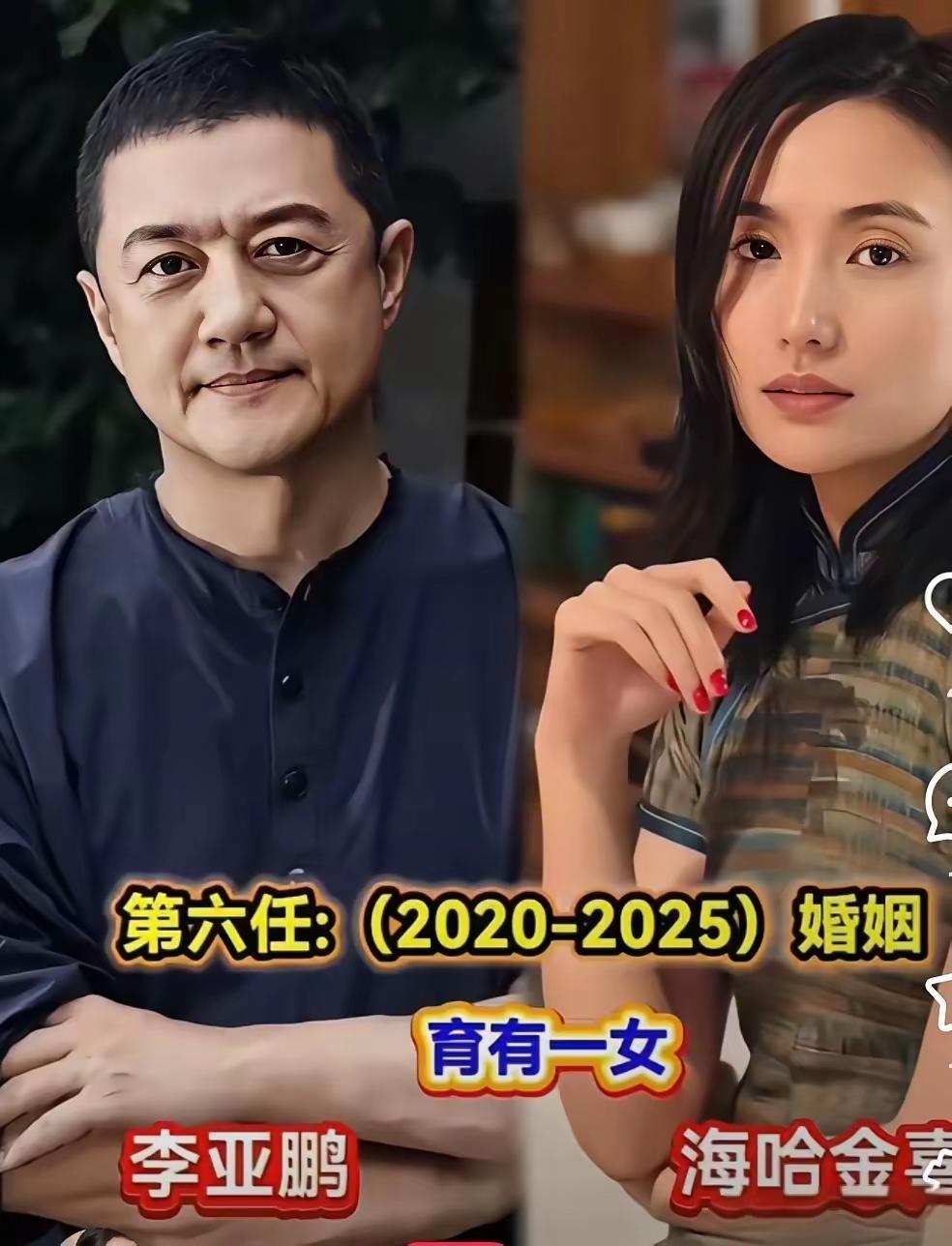 第一任李亚鹏和刘岩,时间短暂第二任李亚鹏和柯蓝,在一起两年第三任李亚鹏和翟颖