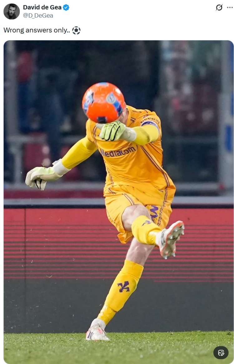 德赫亚社媒晒足球恰好遮挡头部照片:只接受错误的答案..
