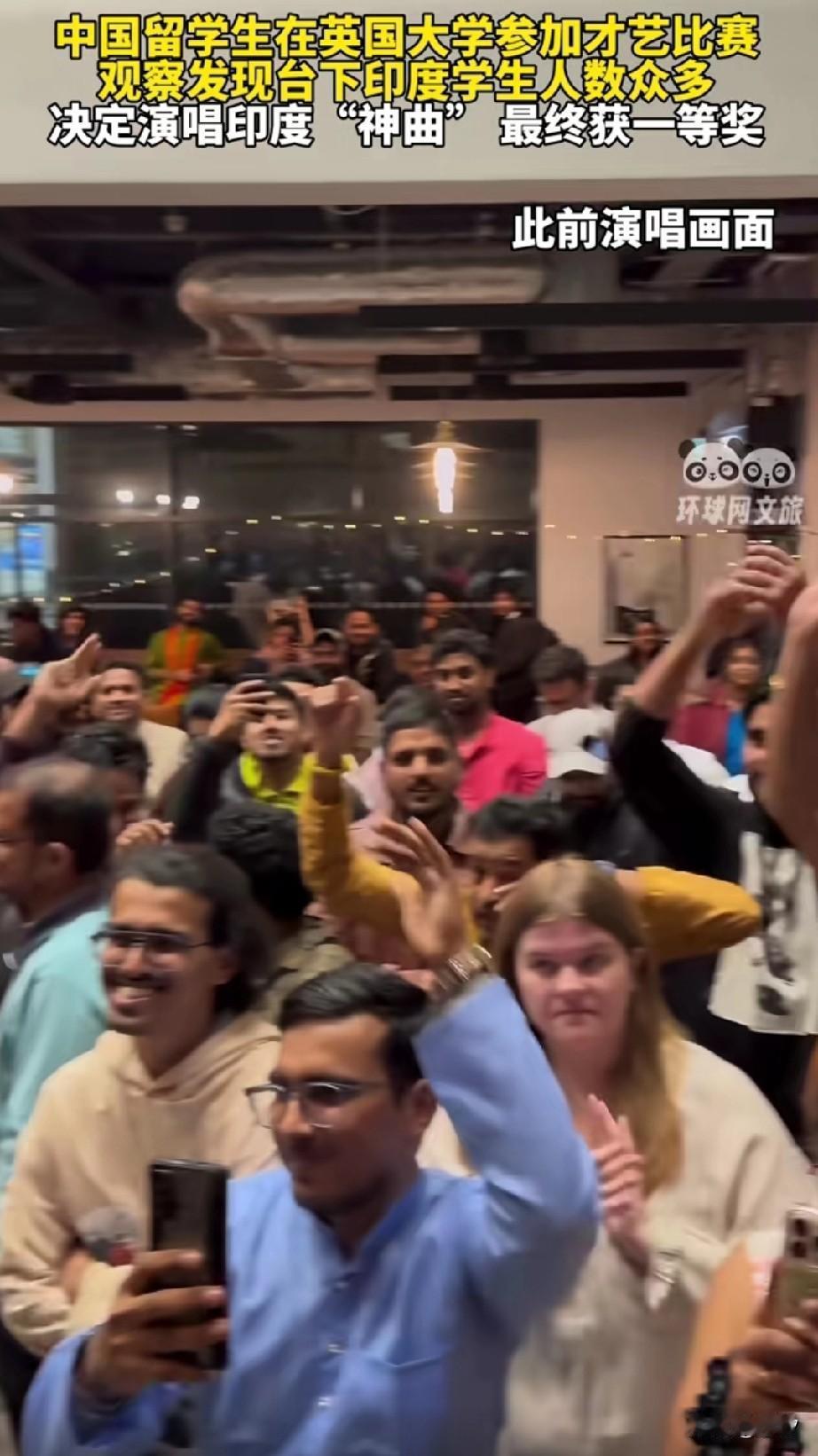 近日,一留学生在英国伦敦参加合唱比赛的视频火了,他参加了当地学校组织的唱歌比赛! 结果一上台,看到下面的观众全都是印度人,这让他直接改变了自己唱的歌,原本准备的歌直接放,唱起了印度神曲! 吉他一弹,音乐响起,熟悉的旋律直接将台下的印度人唱嗨了!他们纷纷举着手机开始摇摆! 有一瞬间让他觉得来到了印度,结果毫无疑问,他成了全场的气氛王,众多印度留学生和他纷纷合唱! 才艺比赛的结果可想而知,他直接获得了第一名,令人诧异的,上台给他颁奖的学校领导,居然也是印度人! 怪不得说印度要凭借人口占领世界,还真的一点也没说错,现在英国伦敦也很多印度人,仿佛一瞬间印度向全世界开始移民! 大家觉得中国留学生在伦敦大学才艺比赛改唱印度神曲是不是很明智? 留学生 英国留学生唱歌 伦敦唱歌 印度人唱英文歌