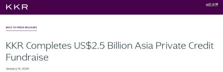 不久前,2026年1月14日,KKR宣布完成25亿美元(约170亿元人民币)亚洲私募信贷基金募资,将重点投资于亚太地区的非公开市场优质信贷资产。