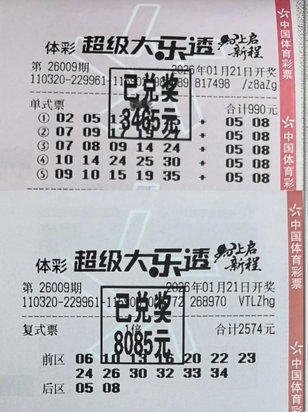 中了,中了!99倍哥今日终迎喜讯——大乐透第26009期开奖,一张单式99倍精准锁死后区“05+08”,其中一注更是拿下“2+2”,单票擒获3465元!另有一张“13+2”复式同样击中“2+2”,稳收8085元。所幸奖金均未触及税线,尽数落袋。此番后区判断可谓神准,希望好运延续,在新规实施前乘胜追击,搏它个亿元头奖,续写属于我们的彩市传奇!