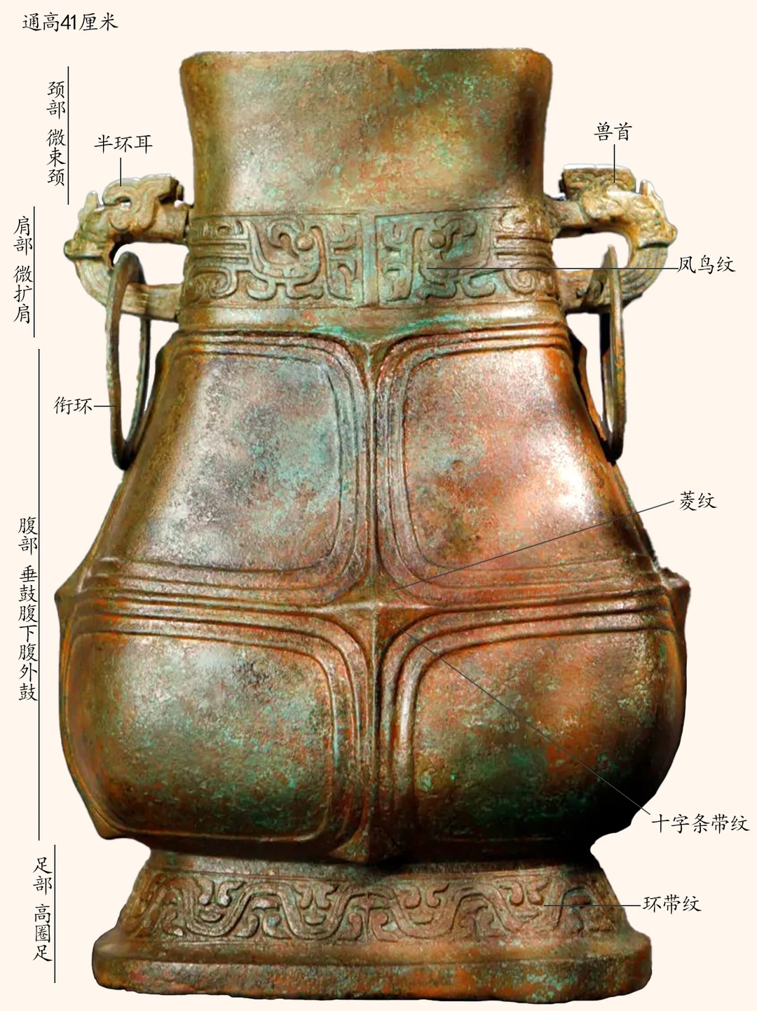 壶是两周时期用来盛酒或盛水的器物,山西博物馆收藏的这件十字条带纹壶,1980年由民间征集。从形制上看,这件壶是西周晚期至春秋早期常见的双耳椭方壶。 该壶外形普通但身世(铭文内容)却不普通,与我们熟知的成语“假道灭虢”“唇亡齿寒”有着密切的关系。 公元前655年,晋国为了进攻虢国,请求虞国借道。当时,虞国的大臣宫子奇曾劝谏虞君不要同意此事,他将虞国与虢国比作唇齿相依的关系,指出如果晋国消灭了虢国,那么虞国必将难逃厄运。然而,虞国国君却因为贪恋晋国送来的丰厚礼物,最终选择了妥协。结果正如宫子奇所预料的那般,晋国成功灭亡了虢国之后,顺势将虞国也收入囊中。 这便是成语“假道灭虢”以及“唇亡齿寒”的来源。 今介绍山西博物院收藏的这件西周晚期至春秋早期的十字条带纹壶。 器物名称:十字条带纹壶(博物馆展牌名称:虞侯政壶)。 时代:西周晚期,也有部分学者认为是春秋早期,笔者支持西周晚期说法。 收藏单位: 山西博物院藏品 。 器物规格: 通高41厘米,口径17.3厘米,宽12.6厘米。 征集品出土地点未知: 1980年省文物商店收购。 器物介绍: 器形: 整器横截面呈椭方形,长方口,平沿,下腹外鼓,高圈足,肩部两侧有兽首衔环。 纹饰: 整器纹饰简单,颈部饰凤鸟纹,腹部为十字条带纹中间为凸菱纹,圈足饰环带纹。 铭文: 在壶颈内壁铸铭文4行24字:“唯王二月初吉壬戌,虞侯政作宝壶,其万年子子孙孙永宝用”。 作者:九芒考古。 参考资料: 杜廼松:《中国古代青铜器小辞典》,文物出版社,1980年。 朱凤瀚:《古代中国青铜器》,南开大学出版社,1995年。 马承源:《中国青铜器》,上海古籍出版社,1988年。 青铜器 博物馆 考古 山西博物院 历史 文物