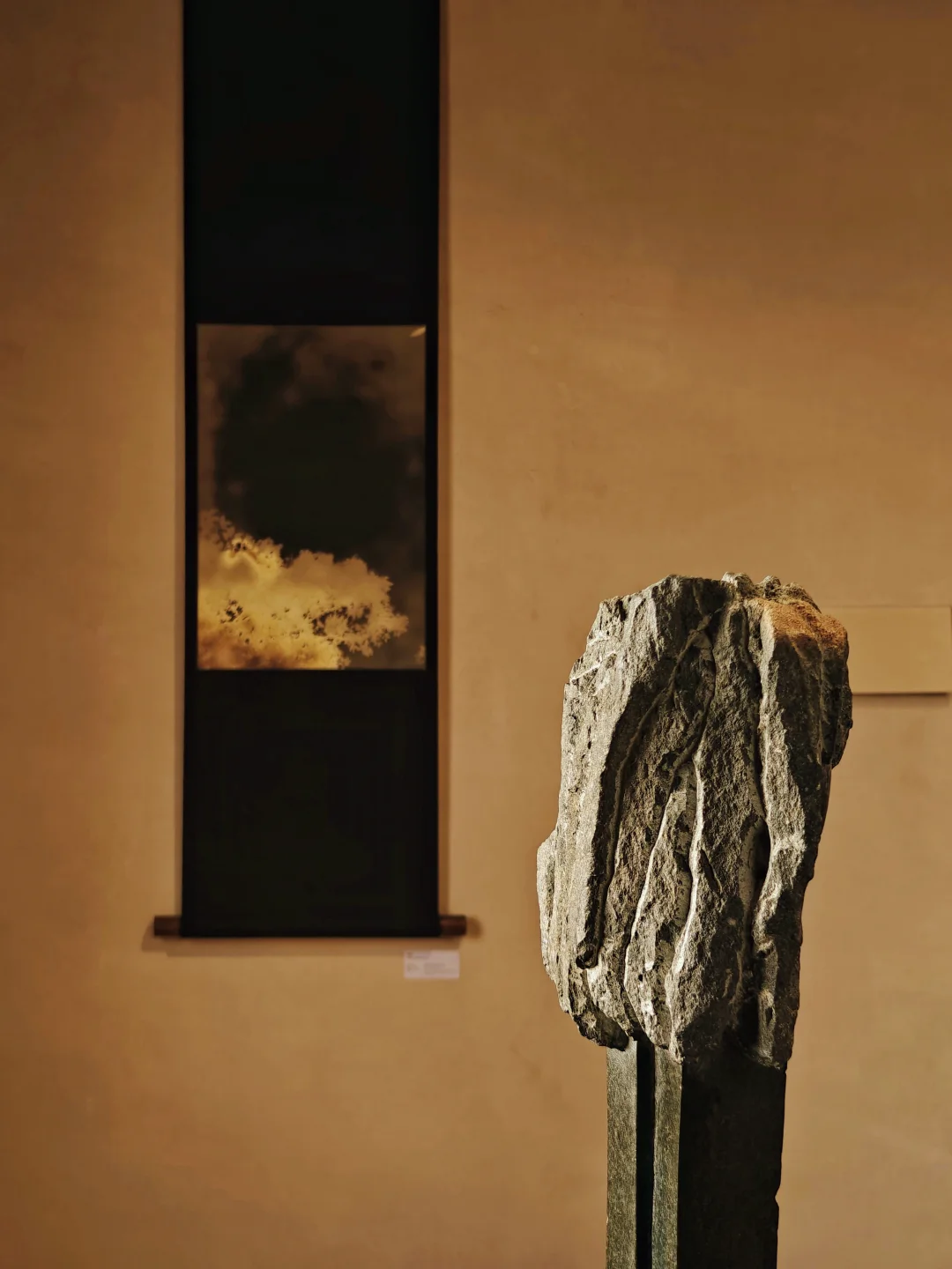 艺术家的创作根植于其跨文化经历与持续的材料实验,形成了一种融合东西方美学与哲学的独特语言。《永恒的经典》以其标志性的材料肌理与朦胧色调,营造被封存的记忆与静谧感。
