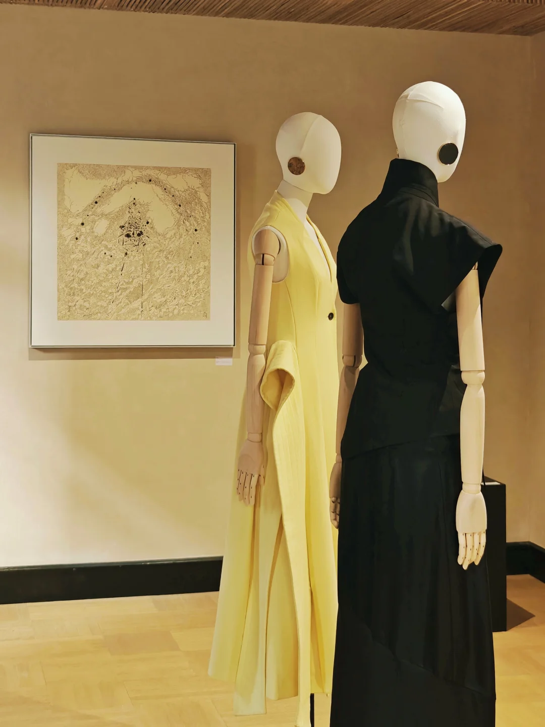 将摄影的敏锐观察与绘画的细腻表达完美融合,形成独特的视觉语言。他的绘画作品与时装形成对话,用流动的气韵与沉静的笔触,共同探讨东方哲学中的“空性”。