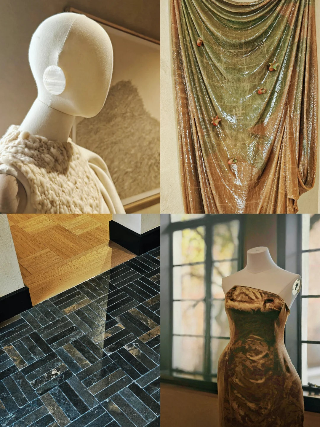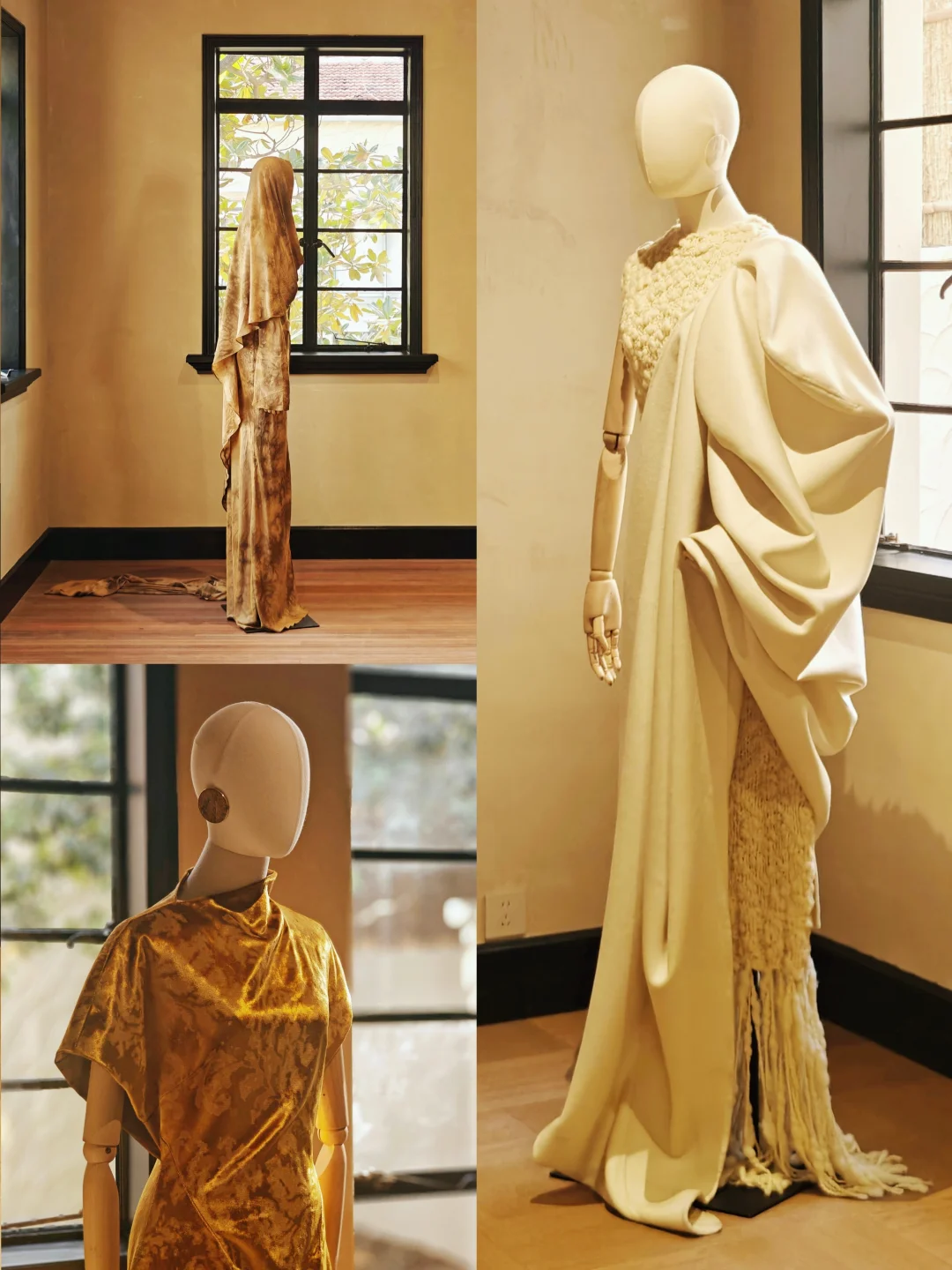 👗DONSEE10创始人陈丹琪为展览创作的“空之微流”系列时装从佛像、古壁画、雕塑中汲取灵感,拥有流动的廓形和雕塑般的曲线刻画,为时装注入独特气韵。