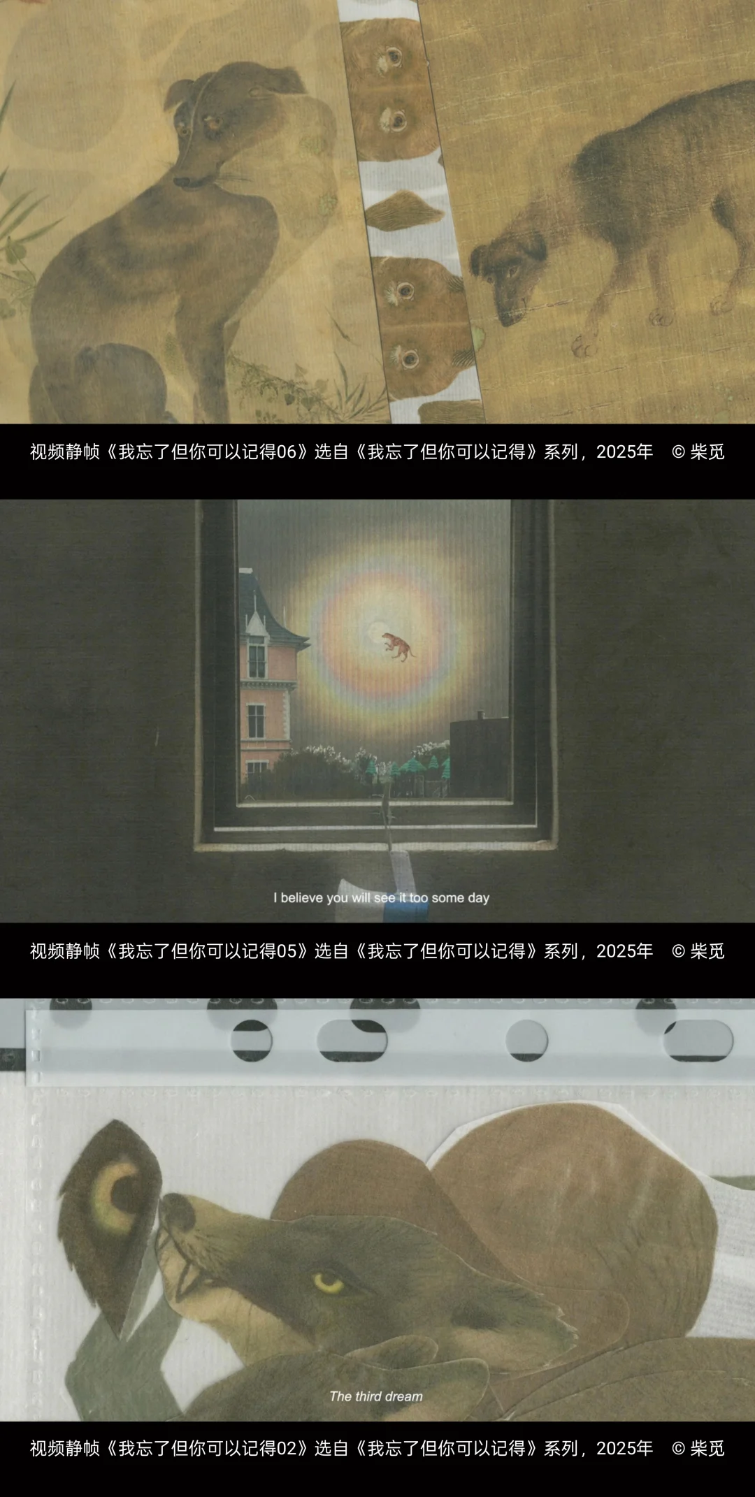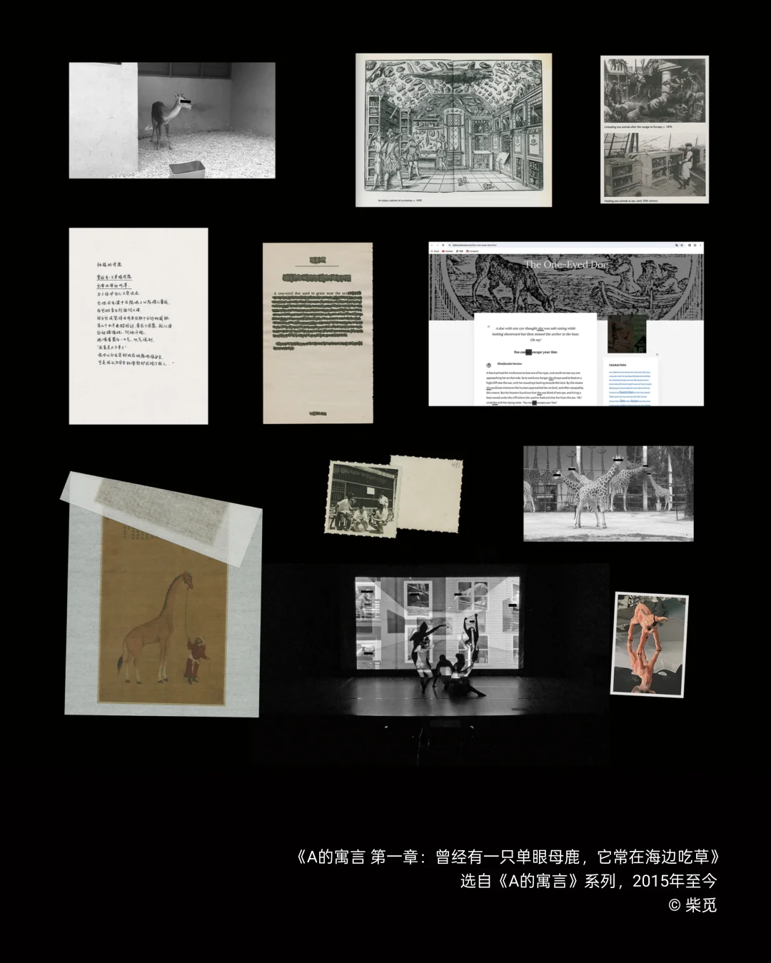 🔹艺术家自2015年起以动物园为创作素材,用手写、涂改等方式重构图像,作品中的“黑色遮挡条”借鉴罗兰·巴特的“刺点”概念,构建出充满想象的观看视窗。2018年起,她重读《伊索寓言》并创作《A的寓言》系列,打破原有叙事逻辑;最新影像《我忘了但你可以记得》则以流浪犬视角,糅合写给女儿的絮语,流露私人诗意。