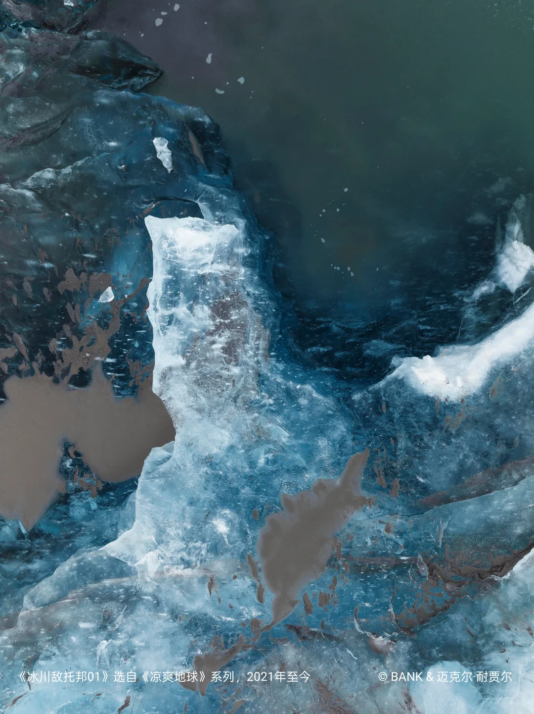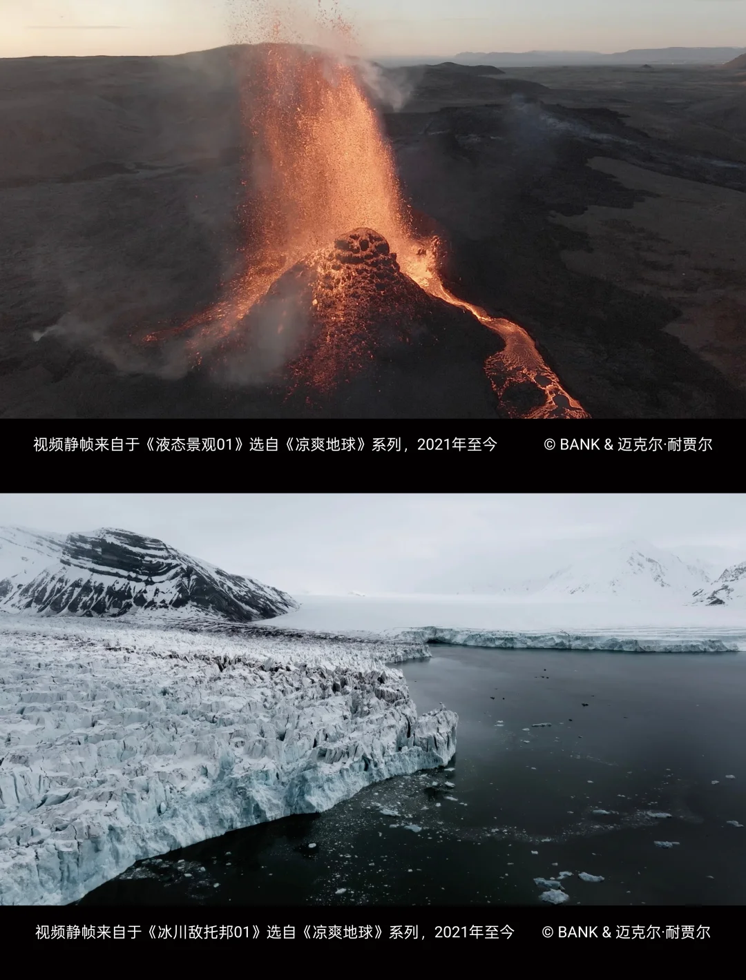 🔹本次展览为艺术家专为上海打造,聚焦地球变革与人类未来议题。艺术家的创作横跨艺术、科技和探险领域,他深入火山、冰川等极端之地实地创作,核心作品《液态景观》《冰川异托邦》以熔岩、冰体的视觉意象,隐喻当下世界的“动态失衡”。
