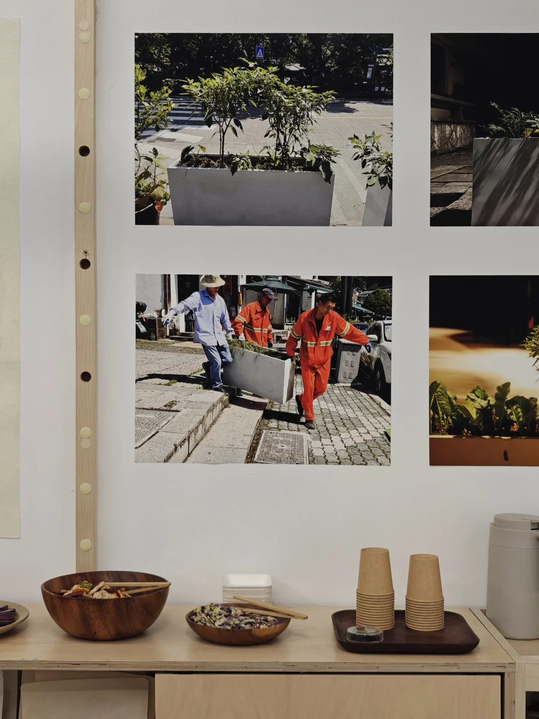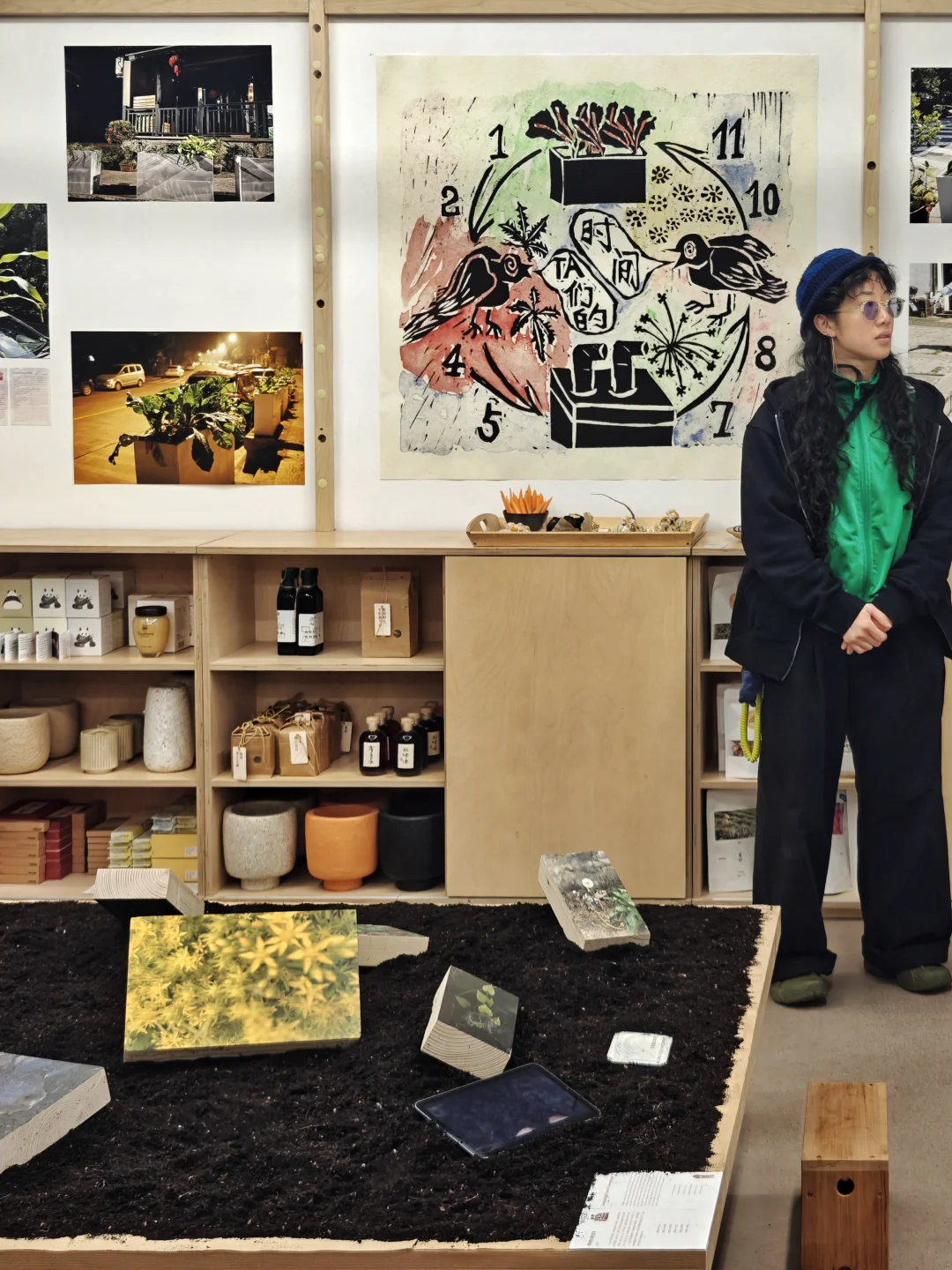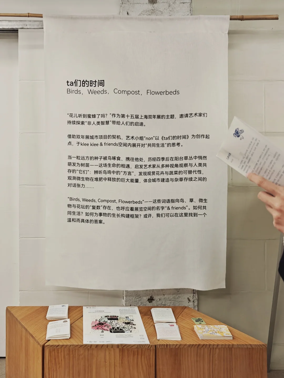 开幕现场聆听策展人和艺术家们介绍展览的点滴,他们没有用宏大的叙事,而是从微观视角出发:辨听鸟鸣里的“方言”,观测堆肥中微生物的能量,用涂鸦探讨杂草与城市的共存,甚至思考观赏花卉和蔬菜的替代关系。每一个细节都在提醒我们,人类从来不是自然的主宰,而是和这些“ta们”共享着同一片天地,在四季流转中同步着自然的节律。