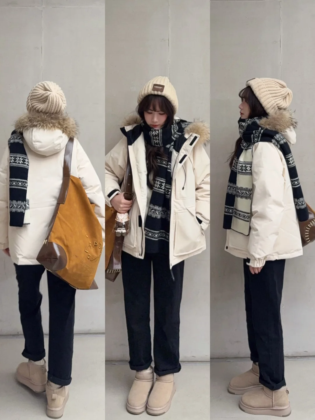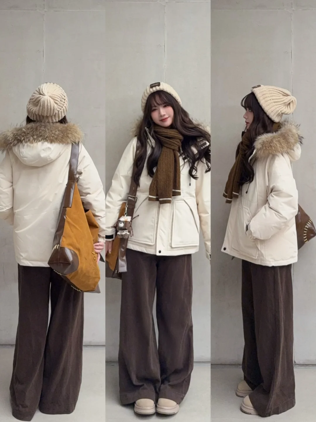 🧺一期米白色派克服穿搭思路(不露腿保暖版