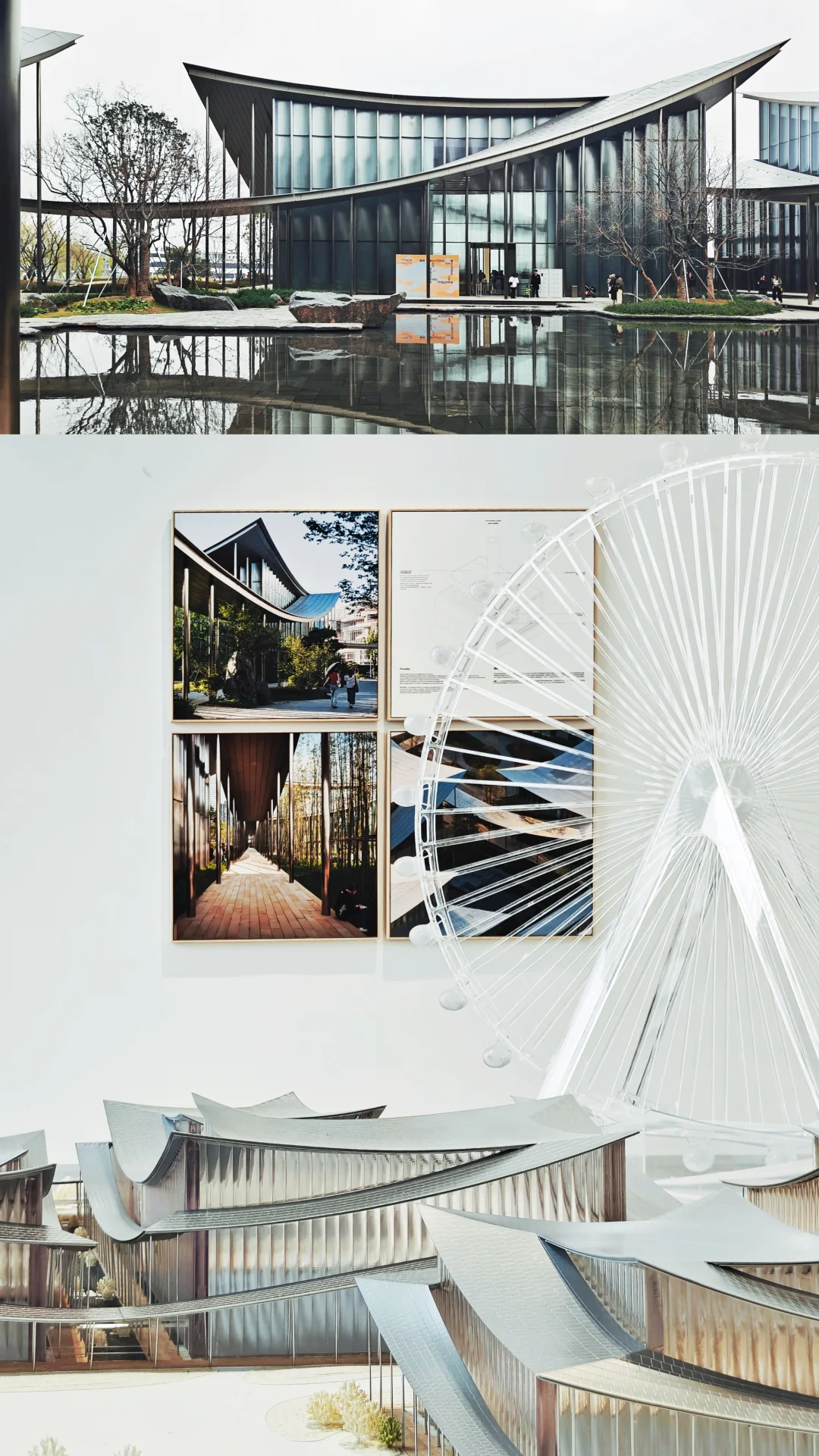 🏠9座巧妙连接的独栋单体组合而成的建筑,本身就是蕞大的展品,建筑与庭院交织,打破了常规的白盒子概念,玻璃幕墙引入自然光的同时,还能让观众把金鸡湖的美景一同纳入视线。“廊”是核心元素,丝带状屋顶延伸形成遮荫长廊,行走在现代感十足的空间也能感受到苏州传统园林的“移步异景”。
