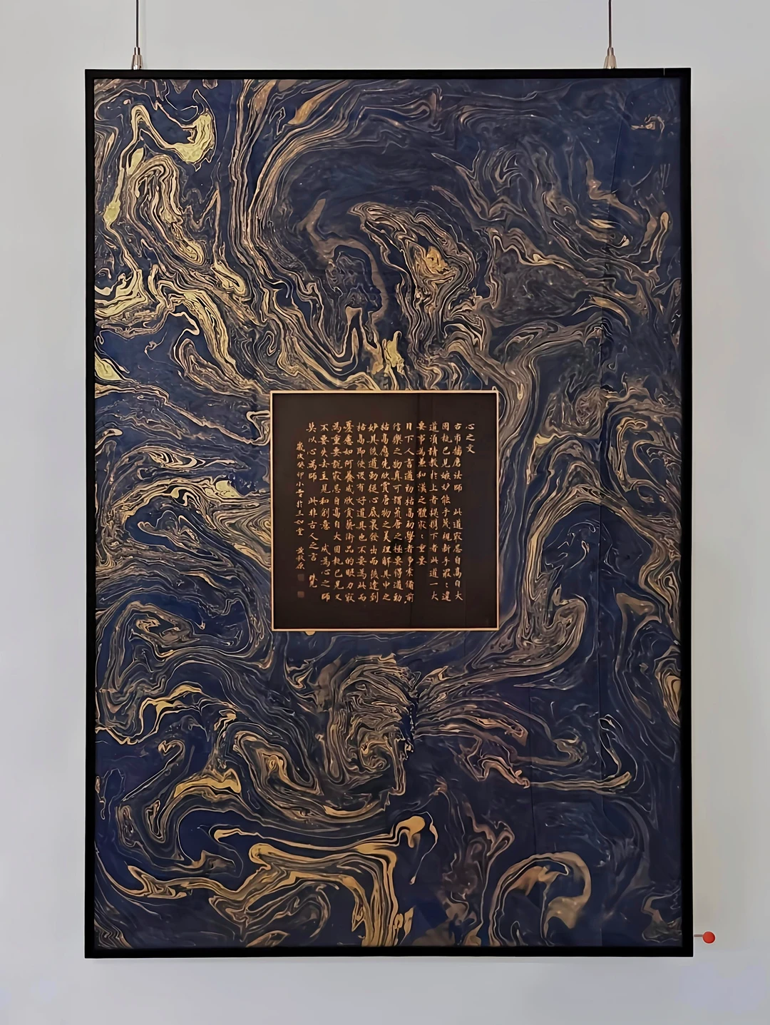 以尼泊尔流沙笺、乌金纸为载体,是艺术家对茶道名人村田珠光经典文本的再创作。墨色在流沙笺的斑驳肌理上晕染,将村田珠光主张的“幽玄”茶道美意识和“茶禅一味”的哲思凝于笔端。