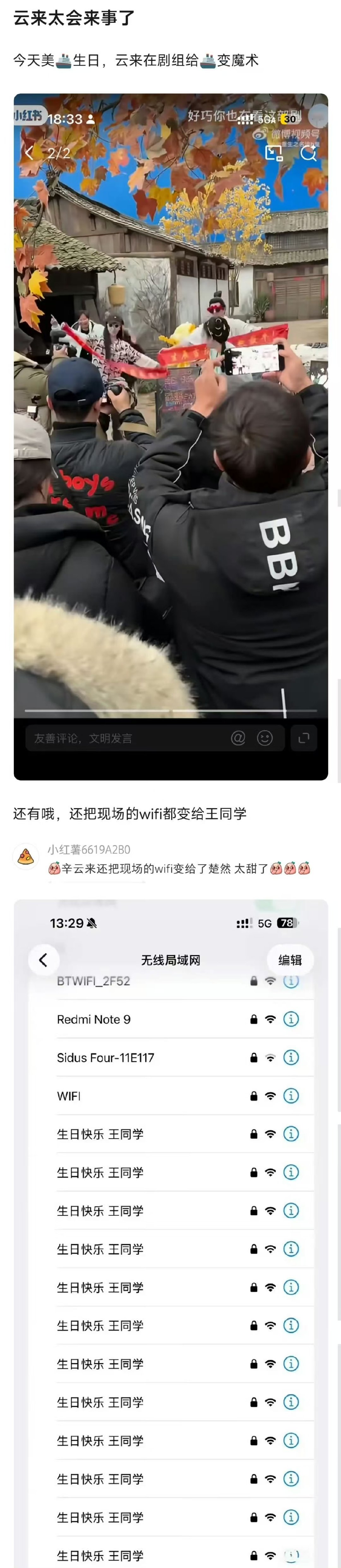 辛云来给王楚然的庆生方式辛云来把现场wifi改成生日快乐王同学云来太会了,变魔术改wifi完全偶像剧