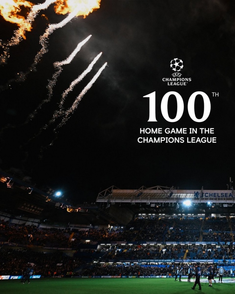 欧冠主场100场里程碑!切尔西社媒晒纪念海报:感谢球迷一直支持