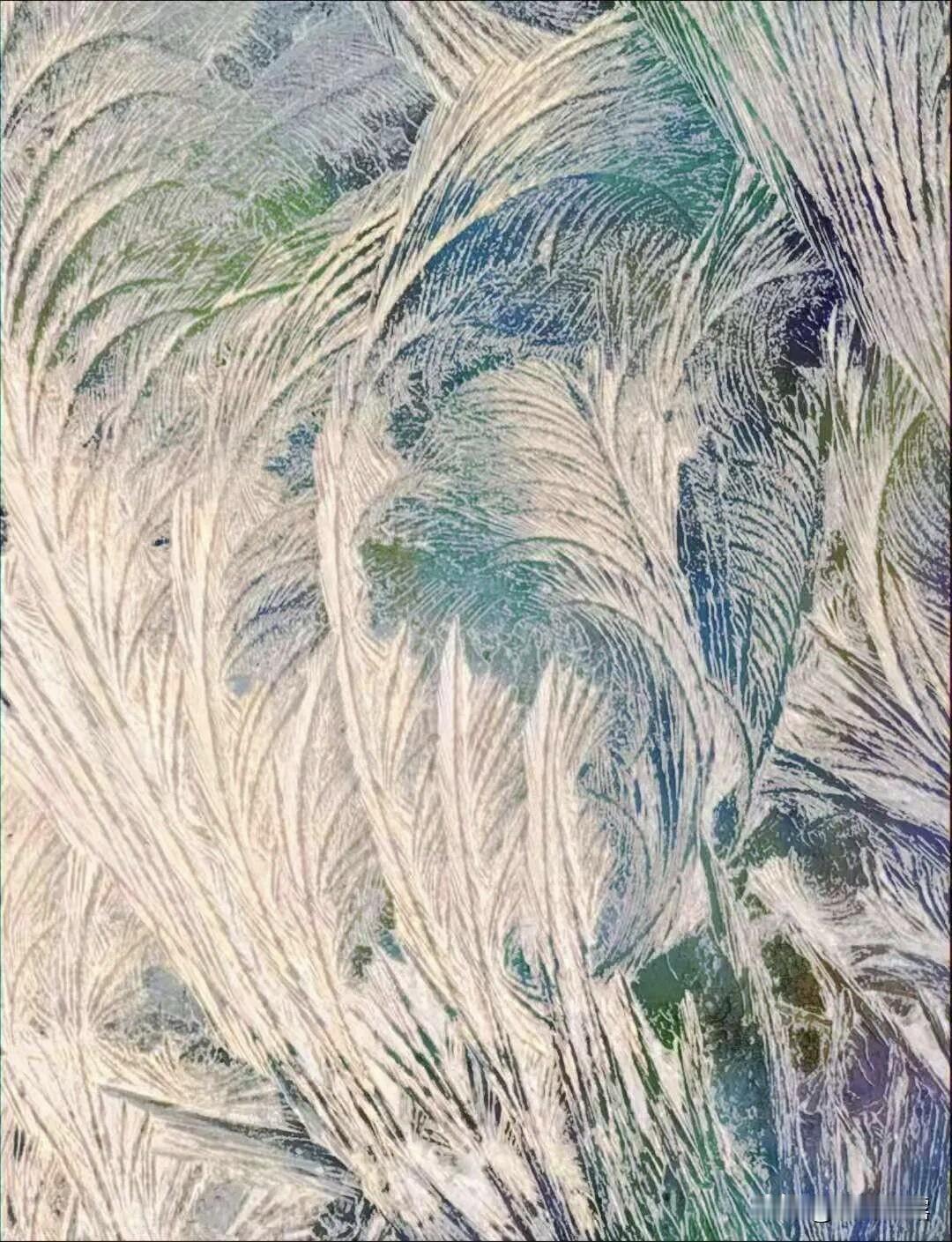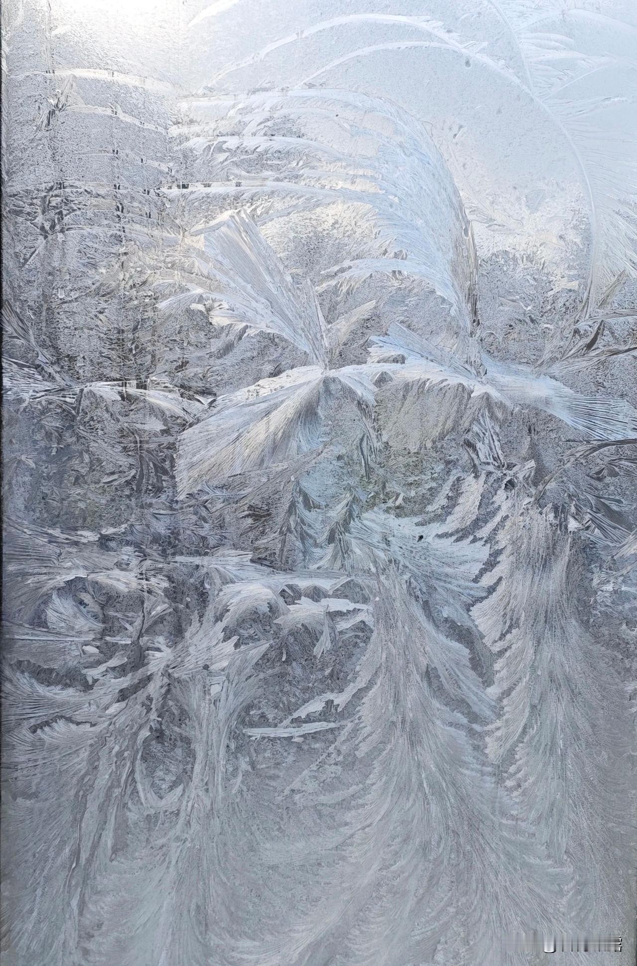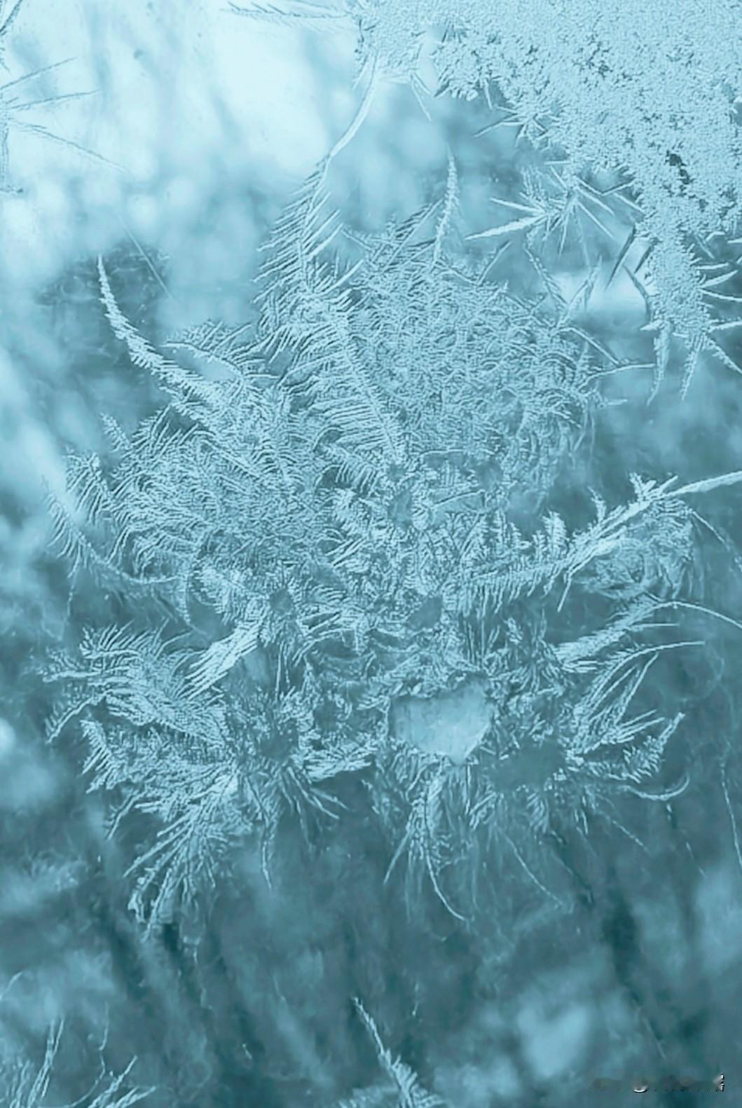 四九天里遇大寒,天寒地冻好冷的天,气温下降北风呼啸,入冬最冷在四九天,今天好冷。入夜窗上冰花悄然绽放,它们风格各异,美轮美奂,漂亮的冻窗花,是大自然的神笔即兴描摹,有的像重山峻岭,有的像幽静的丛林,有的像神奇的花朵,冻窗花在晨熙中展现,又在暖阳下消逝,留下的是对时光的温柔刻记。