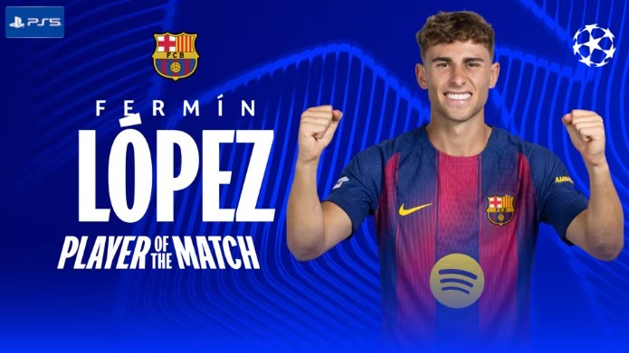 双响+1关键传球,费尔明当选巴萨4-2布拉格斯拉维亚一役全场最佳