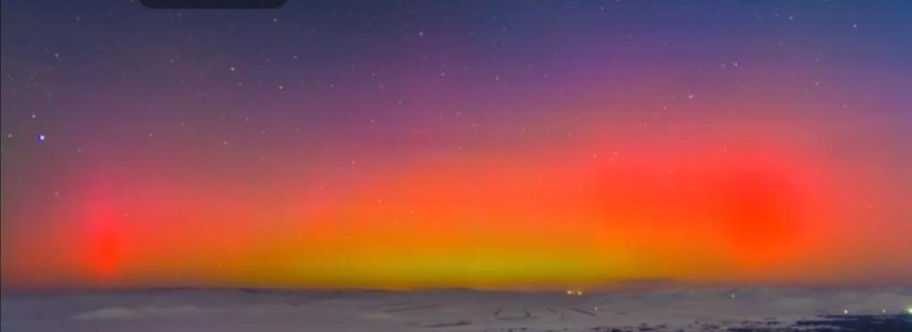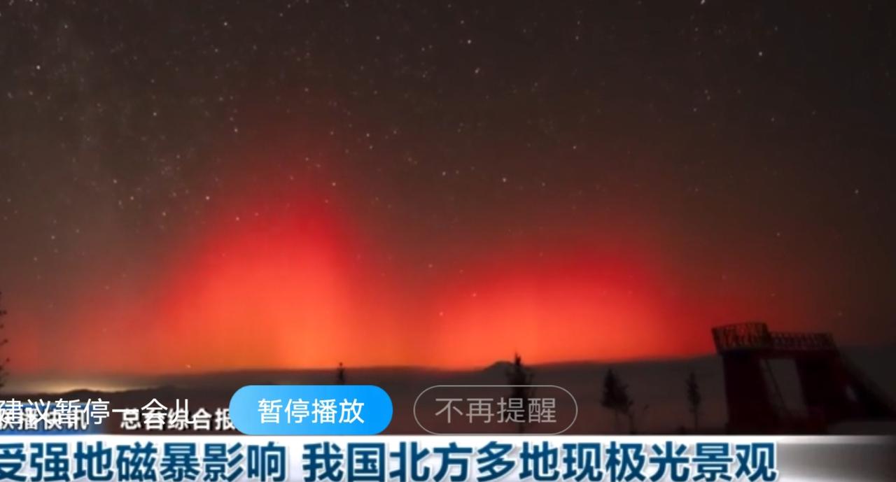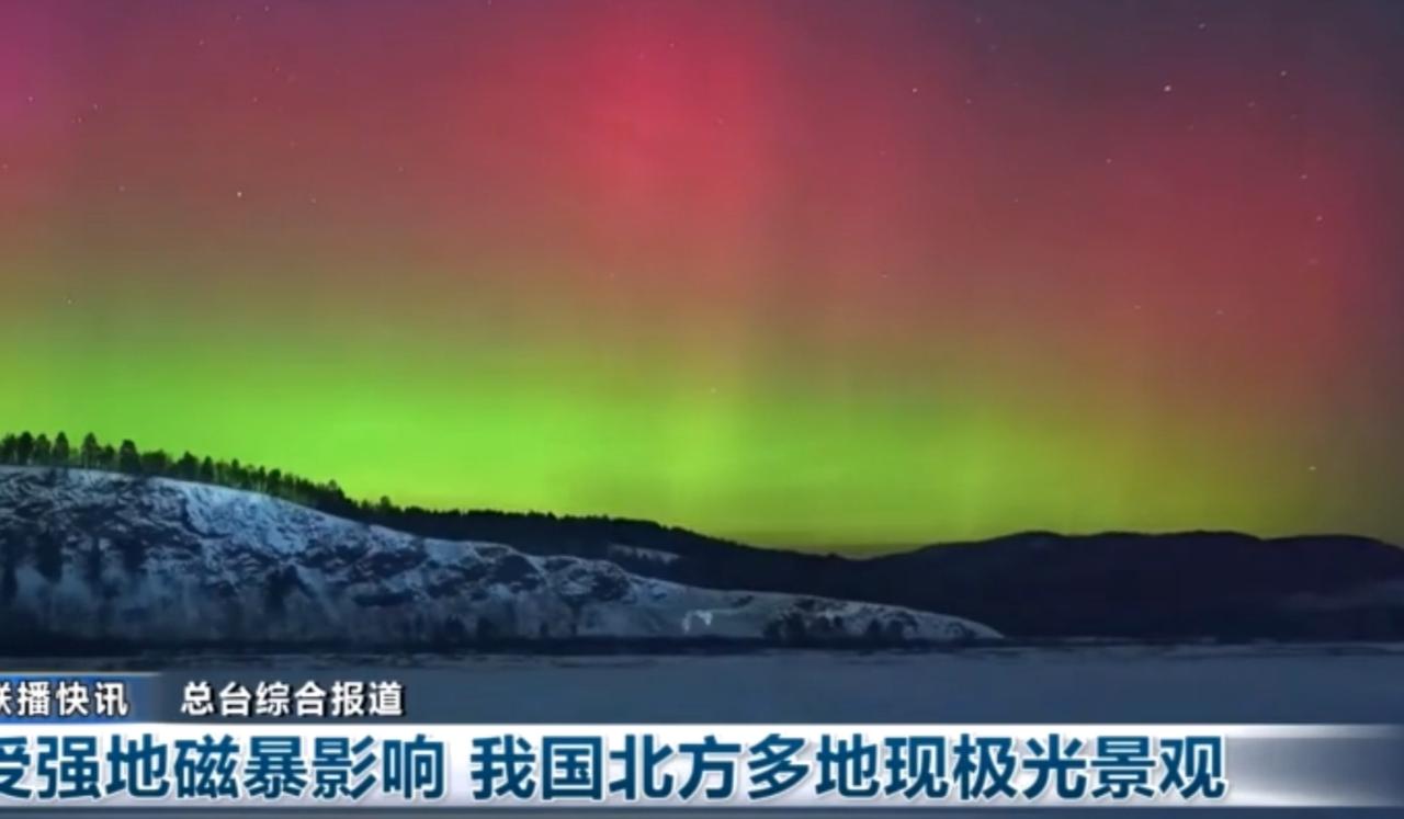 邂逅极光盛宴 受强地磁暴影响,我国北方多地夜空出现了绚丽的极光景观。 从热烈奔放的赤红色光带,到灵动流转的绿黄色光幕,斑斓的色彩在星夜中交织变幻,为银装素裹的北国大地披上了一层梦幻的霓裳。这场难得一见的天象奇观,让无数观测者沉醉其中,也印证着地球与宇宙之间浪漫而磅礴的能量互动。