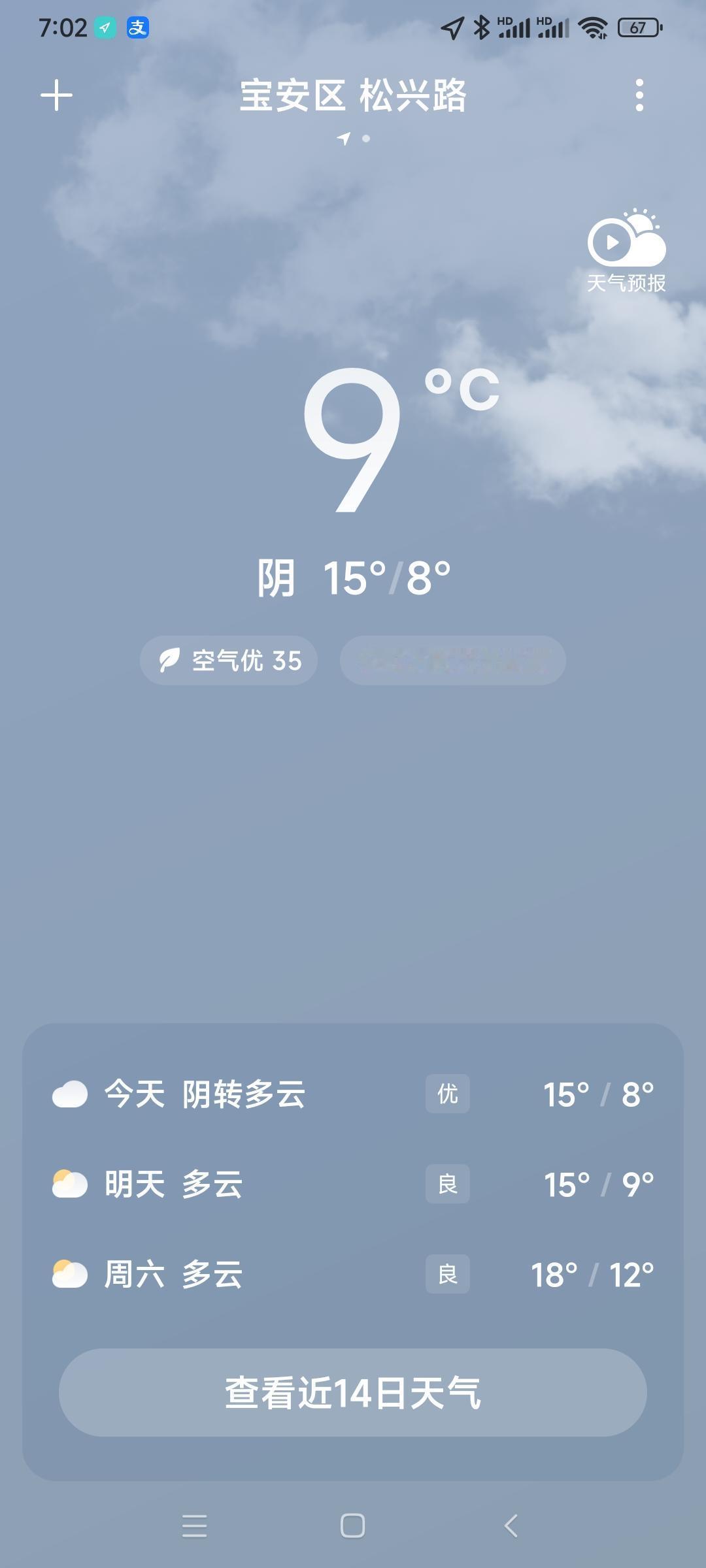 我的今日状态:😁轻松愉快 我这里的天气:🌤️多云深圳今天阴转多云,气温8度到
