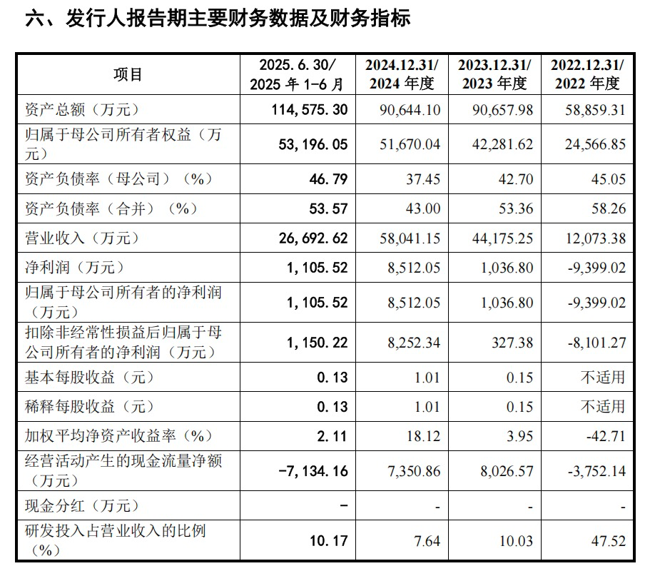 财务数据显示,2022年度、2023年度、2024年度和2025年1-6月,亚电科技的营业收入分别为1.21亿元、4.42亿元、5.80亿元和2.67亿元;归母净利润分别为-9399.02万元、1036.80万元、8512.05万元和1105.52万元。公司选择科创板第一套上市标准申报上市。