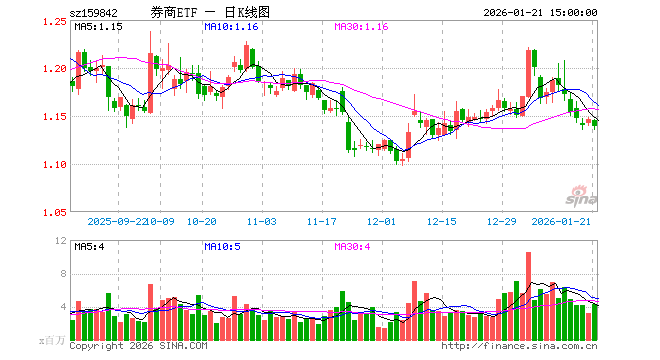 1月21日,券商ETF(159842)跌0.61%,成交额4.90亿元。当日份额增加1.03亿份,最新份额为94.62亿份,近20个交易日份额增加15.81亿份。最新资产净值计算值为107.70亿元。