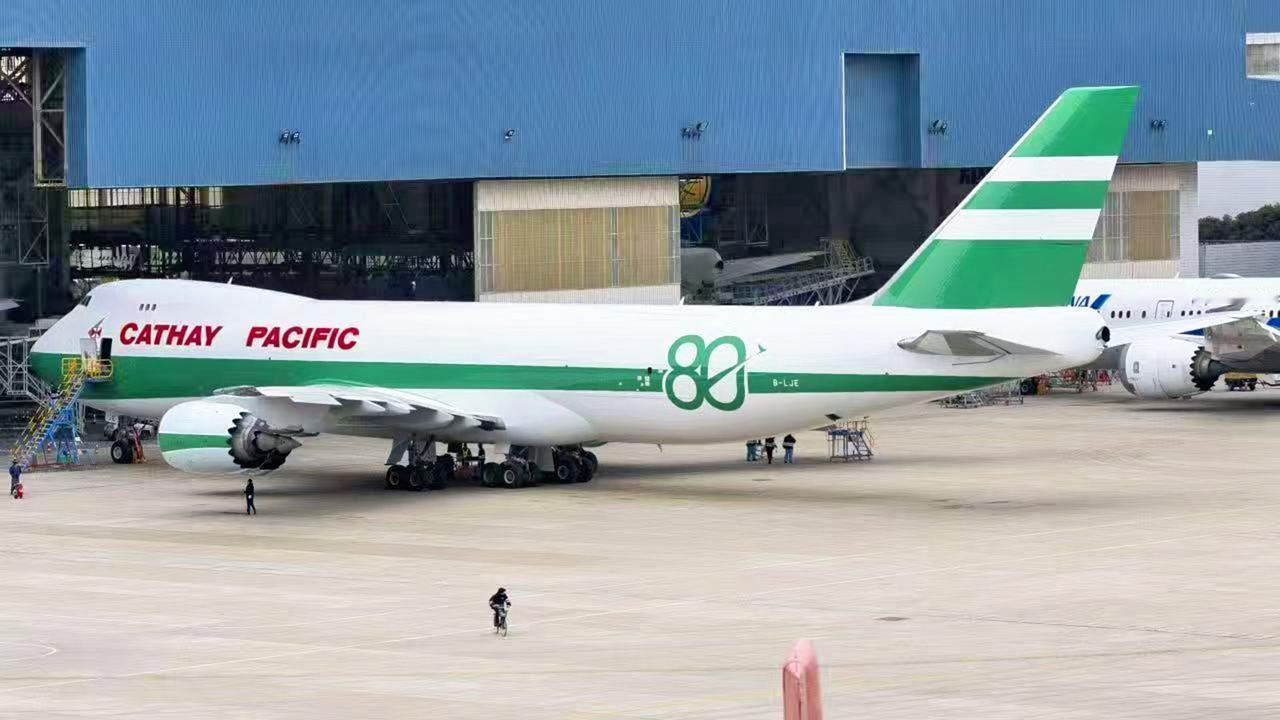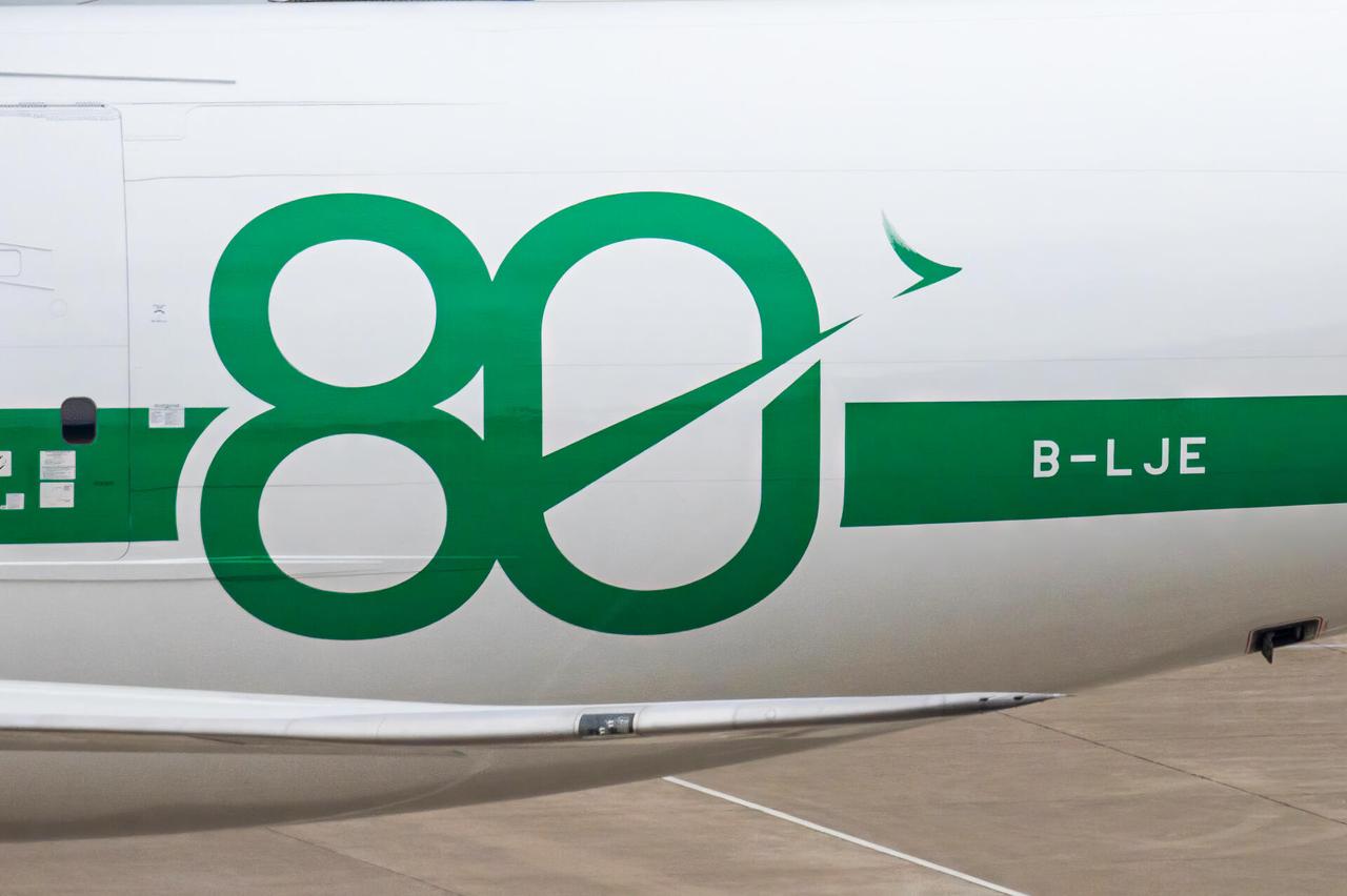 近日,国泰航空为一架波音747F喷涂了特殊涂装,庆祝公司成立80周年,同时致敬该