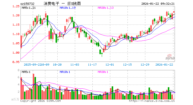 1月22日,消费电子ETF(159732)开盘涨0.50%,报1.214元。消费电子ETF(159732)重仓股方面,立讯精密开盘涨0.65%,胜宏科技涨1.31%,京东方A涨0.00%,兆易创新涨4.01%,豪威集团涨0.67%,歌尔股份涨0.89%,东山精密涨0.82%,TCL科技涨0.20%,蓝思科技涨0.13%,长电科技涨3.76%。
