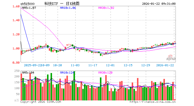 1月22日,科技ETF(515000)开盘涨0.84%,报1.084元。科技ETF(515000)重仓股方面,新易盛开盘涨0.12%,中际旭创涨1.41%,恒瑞医药涨0.43%,药明康德涨0.46%,中芯国际涨1.41%,海光信息涨4.82%,北方华创涨1.14%,澜起科技涨8.03%,中科曙光涨2.82%,胜宏科技涨1.31%。